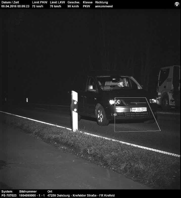 Einen Tag später, am 9. April, gegen 09.00 Uhr, wurde obige Person auf der Krefelder Straße in Duisburg mit überhöhter Geschwindigkeit geblitzt.