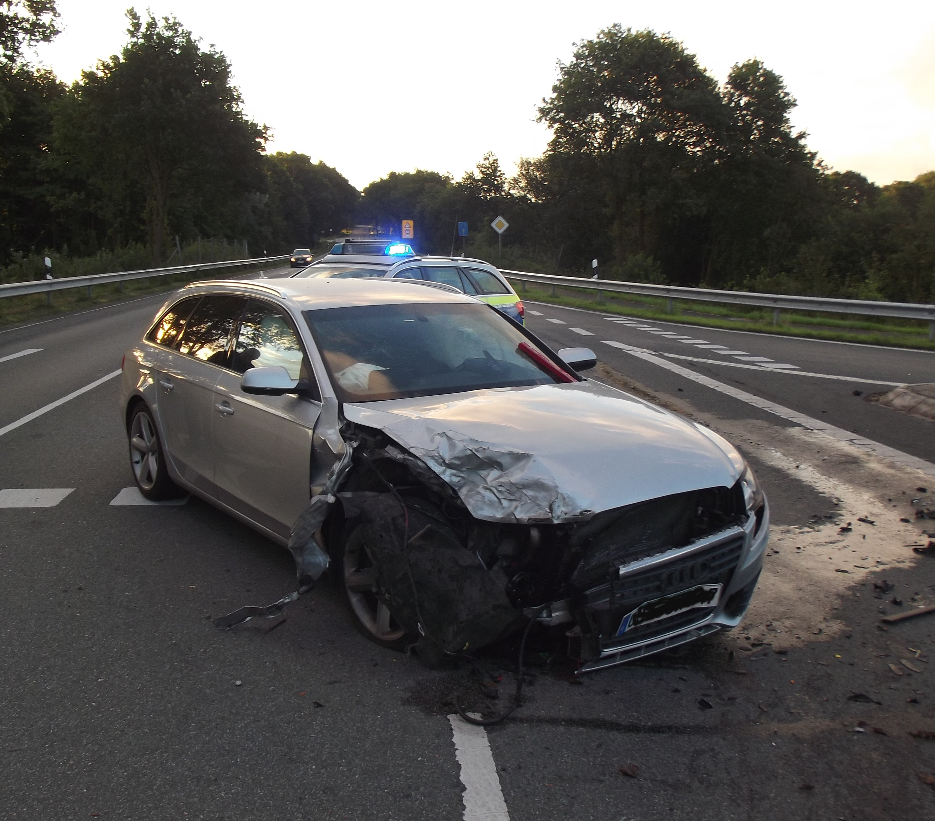 Cuxhaven (ots) - Geestland. Donnerstagfrüh gegen 5:30 Uhr befuhr eine 24-jährige Sprinter-Fahrerin aus Delmenhorst die L 120 aus Richtung Drangstedt kommend, in Richtung Langen, um an der Einmündung zur Anschlussstelle Debstedt auf die A 27 in Richtung Cuxhaven aufzufahren. Dabei übersah sie einen entgegenkommenden Audi, mit dem ein 32-jähriger Drangstedter unterwegs war. Es kam im Einmündungsbereich zum Zusammenstoß, bei dem der Audi-FAhrer leicht verletzt worden ist. An den beteiligten Fahrzeugen entstand Totalschaden in Höhe von insgesamt ca. 80.000 Euro. Der Bereich der Anschlussstelle wurde im Zeitraum von 6:30 Uhr bis 7:10 Uhr für Bergungsmaßnahmen teilweise gesperrt.