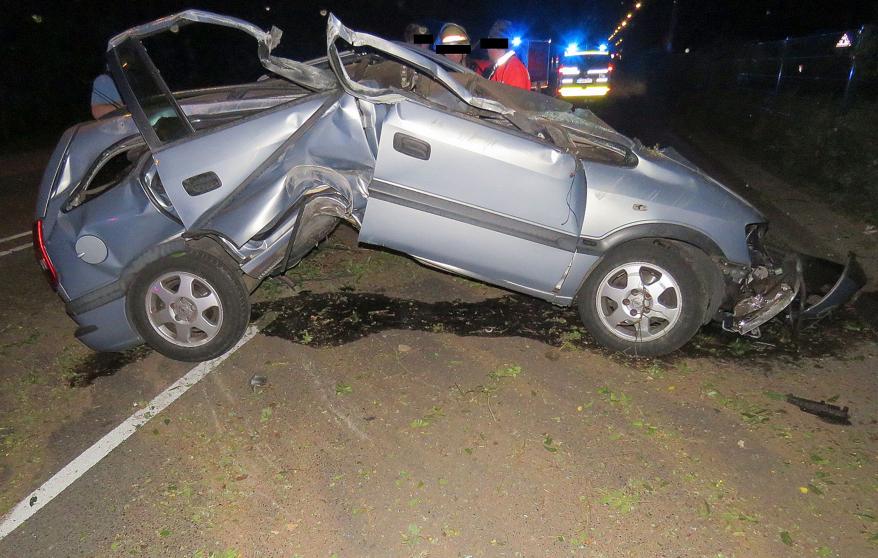 Der völlig zerstörte Pkw rutscht noch einige wenige Meter weiter und kam erst auf der Gegenfahrbahn zum Stehen. Beide Insassen werden bei dem Unfall schwer verletzt. Die Feuerwehr musste sie mit einer Rettungsschere aus dem Unfallfahrzeug herausschneiden. Beide wurden zur ambulanten Versorgung ins Krankenhaus eingeliefert.
