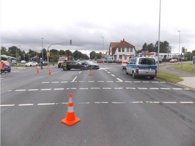 Cuxhaven (ots) - Wurster Nordseeküste. Am Mittwochnachmittag gegen 15:15 Uhr verursachte ein 50-jähriger Passat-Fahrer im Nordholzer Kreuzungsbereich Bundesstraße/Peter-Strasser-Platz/Bahnhofstraße einen Unfall. Als er von der Bahnhofstraße kommend nach links auf die L 135 einbiegen wollte, übersah er offenkundig einen Opel Astra, der die Kreuzung geradeaus überquerte. Es kam zum Zusammenstoß, infolge dessen der 26-jährige Opel-Fahrer sowie die 49-jährige Beifahrerin im Passat leicht verletzt wurden. Der entstandene Sachschaden beträgt etwa 25.000 Euro. Beide Fahrzeuge mussten abgeschleppt werden.