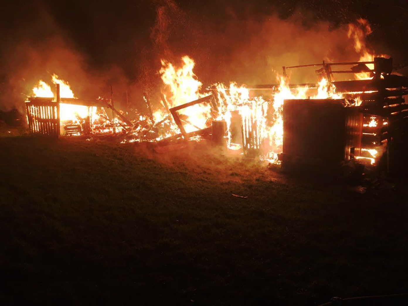 Bei Eintreffen der Feuerwehr stand die Holzhütte (ehemaliger Schafstall) in Vollbrand.