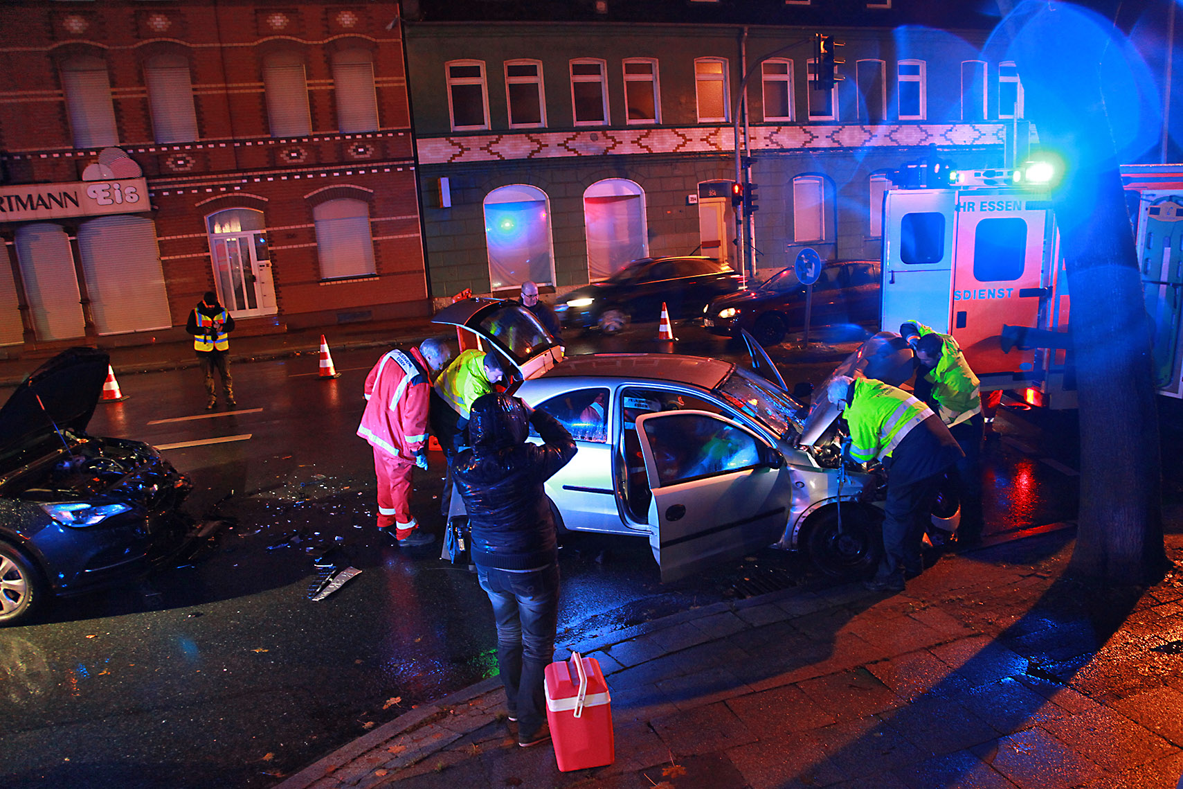 Essen-Freisenbruch, Bochumer Landstraße Ecke Roidenseelstraße, 20.11.2017, 18.07 Uhr (ots) - Gestern Abend (20.11.2017) um kurz nach 18.00 Uhr ereignete sich in Essen-Freisenbruch ein schwerer Verkehrsunfall. Ein Opel Corsa und ein Opel Cascada kollidierten im Kreuzungsbereich Bochumer Landstraße Ecke Rodenseelstraße. Der 49 Jahre alte Fahrer des Corsa musste über den Kofferraum mittels Spine-Board patientengerecht aus seinem Fahrzeug befreit und nach notärztlicher Versorgung in ein Krankenhaus gebracht werden. Die 46jährige Fahrerin des zweiten Unfallfahrzeuges kam ebenfalls in eine Klinik. Die Unfallursache ist noch unklar, die Polizei ermittelt. Während des Einsatzes kam es zu Beeinträchtigungen im Individualverkehr. (MF)