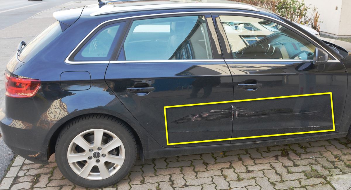 Der schwarze Audi A3 Sportsback stand zwischen 13.10 und 13.30 Uhr, also nur 20 Minuten, in einer Parkreihe neben einem Zebrastreifen vor dem Haupteingang des Verbrauchermarktes. In dieser Zeit muss ein bislang unbekanntes Fahrzeug die rechte Fahrzeugseite des Audi touchiert und erheblich beschädigt haben. Der Verursacher setzte seine Fahrt fort, ohne sich um den Schaden zu kümmern.