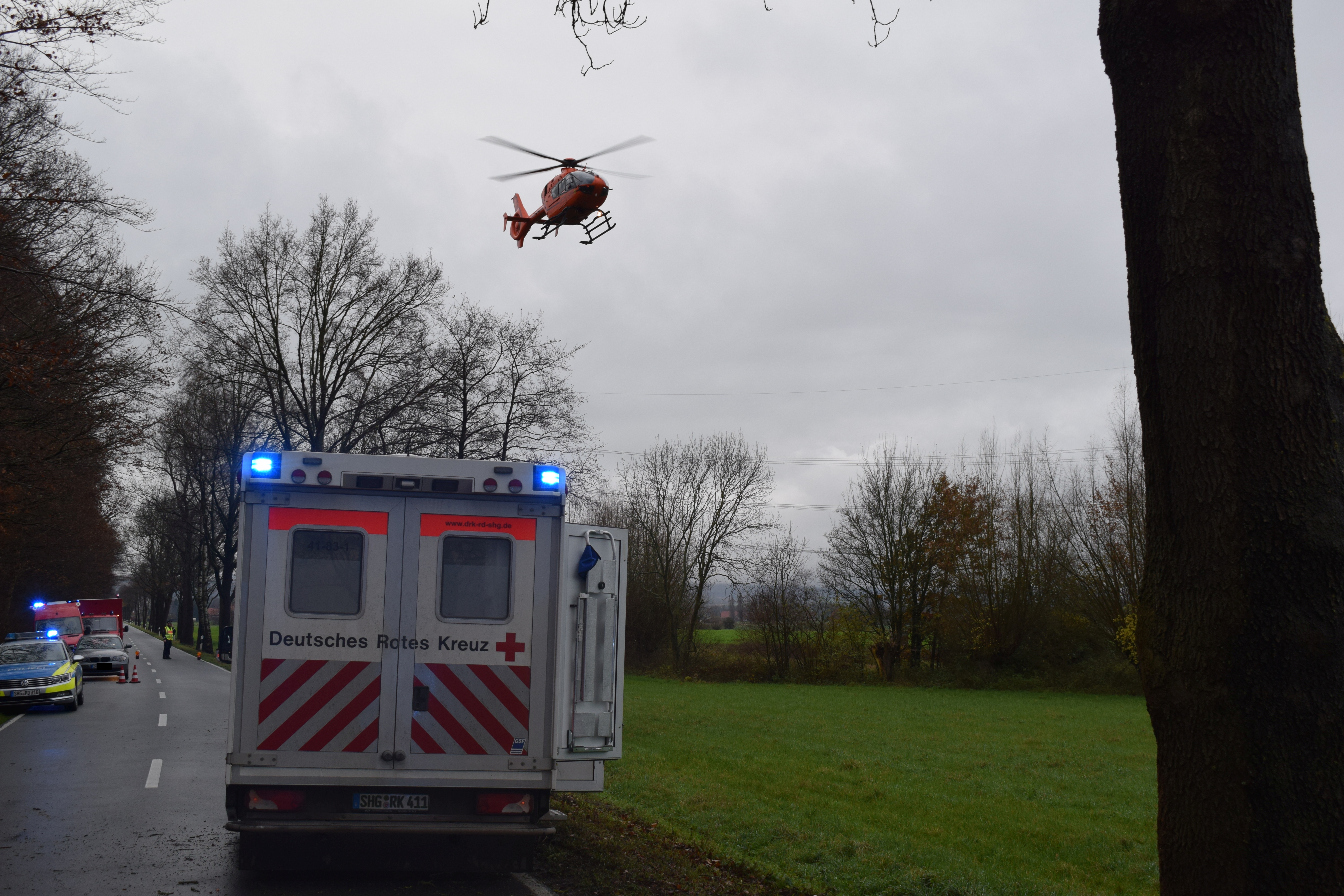Nienburg (ots) - (BER)Am Freitagmorgen, 24.11.2017, gegen 09.25 Uhr wurden Polizei und Rettungsdienste zu einem Verkehrsunfall alarmiert. Der Hinweisgeber teilte mit, dass auf einem Feld außerhalb von Lindhorst ein zertrümmerter Pkw liege. An der Unfallstelle bot sich den eintreffenden Polizeibeamten, Rettungskräften und Feuerwehrleuten ein Trümmerfeld dar. Auf einer Gesamtstrecke von ca. 100 Metern waren Fahrzeugteile verstreut, teilweise auf der Fahrbahn, zum großen Teil auf einer Wiese sowie einem Feld. Der komplette Motorblock sowie Teile des Antriebsstranges und dem Getriebe waren aus der Karosserie gerissen worden und lagen noch einmal ca. 40 Meter vor dem verunfallten Pkw. Nach bisherigen Ermittlungen der Stadthäger Polizei war der Fahrer des BMW, ein 59 - jähriger Mann aus dem Kreis Lippe, aus Richtung Lindhorst kommend mit sehr hoher Geschwindigkeit nach links von der Fahrbahn abgekommen, nahezu frontal gegen einen Straßenbaum sowie eine Grabenüberführung für landwirtschaftliche Fahrzeuge geprallt und dann auf einem Feld zum Stillstand gekommen. Aufgrund der starken Deformierungen setzten die ca. 25 Feuerwehrleute aus Lindhorst und Beckedorf schweres Gerät, unter anderem zum Aufschneiden des Daches und zum Aufspreizen von Türen ein. Der Fahrer wurde während der Rettungsaktion vom Notarzt und den Rettungssanitätern medizinisch versorgt. Nach einer Behandlung des Mannes im Rettungswagen, brachte der Rettungshubschrauber den schwerstverletzten Patienten in die Medizinische Hochschule nach Hannover. Zurzeit sind keine Zeugen für den Verkehrsunfall bei der Polizei bekannt. Der Unfallhergang ist damit noch weitgehend unklar. Speziell ausgebildete Beamte setzten nach dem Abtransport des Verletzten ein besonderes, fotogestütztes Unfallaufnahmesystem ein. Für die Unfallaufnahme, die Bergung und die Reinigung wurde die K 30 für mehrere Stunden voll gesperrt. Der Verkehr wurde örtlich abgeleitet.