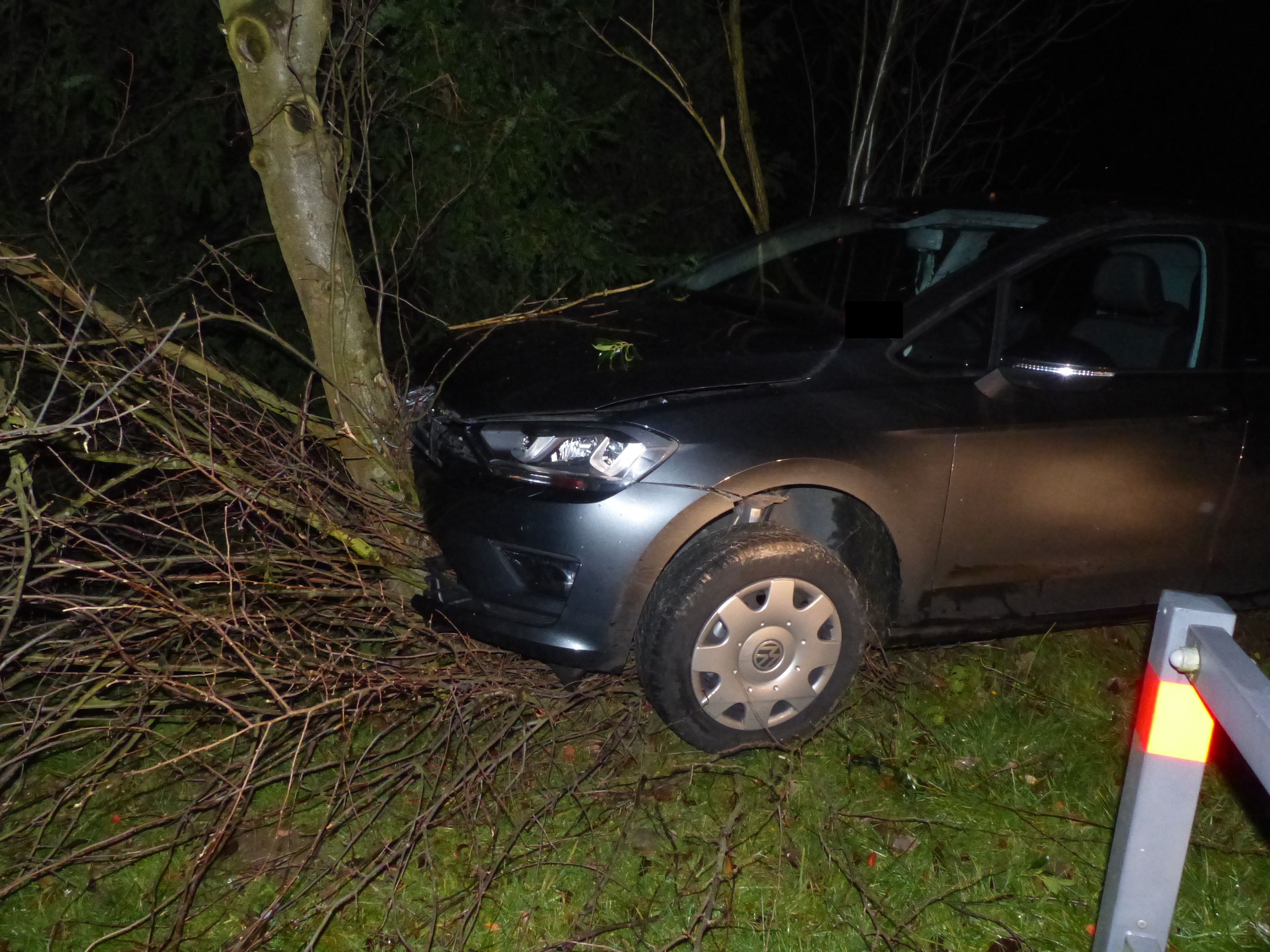 Gegen 05:40 Uhr erhielten die Beamten Kenntnis von einem Verkehrsunfall, dessen Verursacher sich aus dem Staub gemacht hatte. Der oder die bislang unbekannte Fahrer/-in war auf der Straße Am Römerpark unterwegs gewesen und von dieser aus nach links in die Straße Auf der Komm abgebogen. Hierbei hatte er oder sie die Kontrolle über das Fahrzeug verloren, war nach rechts von der Straße abgekommen, hatte einen Leitpfosten sowie eine Grünfläche überfahren und war schließlich gegen einen Baum geprallt. Als die Polizisten am Unfallort eintrafen, fehlte von den Insassen jede Spur. Der Wagen wurde sichergestellt.
