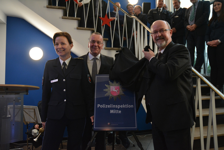 Polizeipräsident Volker Kluwe ergänzt: "Hell, freundlich, aufgeräumt - ein Wandel, der nicht nur das sanierte Gebäude betrifft und äußerlich erkennbar ist. So sehen wir auch uns und so wollen wir auch wahrgenommen werden, heute und in Zukunft - Hell, freundlich und aufgeräumt - so wünschen wir uns das Image der Polizeiinspektion Mitte."