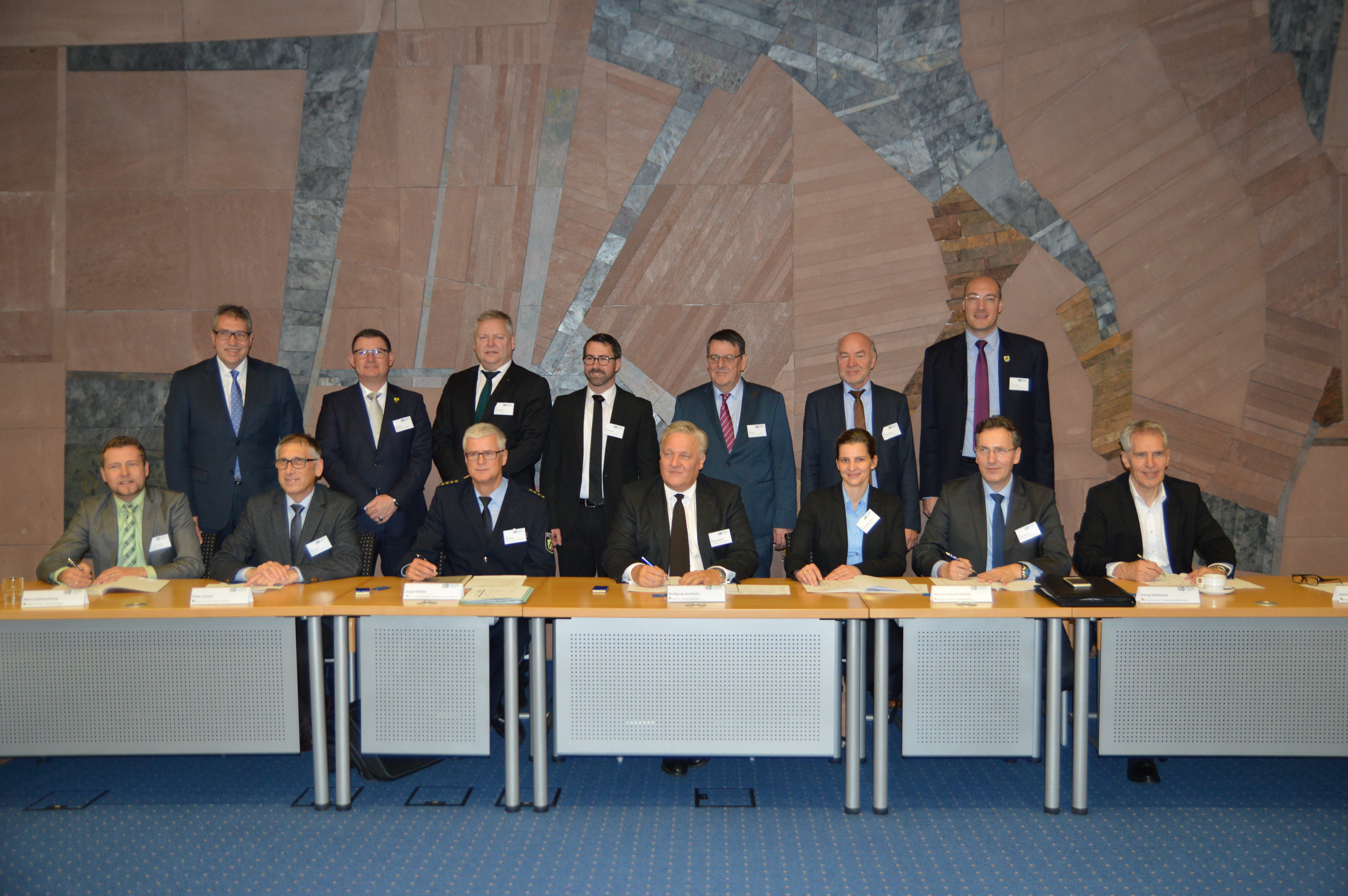 Düren (ots) - Am Freitag, dem 22. Dezember 2017, haben Landrat Wolfgang Spelthahn, die Bürgermeister Ralf Claßen (Aldenhoven), Peter Cremer (Heimbach), Axel Buch (Hürtgenwald), Jörn Langefeld (Inden), Heinrich Göbbels (Langerwehe), Marion Schunck-Zenker (Linnich), Georg Gelhausen (Merzenich), Marco Schmunkamp (Nideggen), Hermann Heuser (Niederzier), Dr. Timo Czech (Nörvenich), Jürgen Frantzen (Titz) und Joachim Kunth (Vettweiß) sowie der Leiter der Abteilung Polizei, Jürgen Möller, im Kreishaus Düren eine Kooperationsvereinbarung unterzeichnet. Ihre Behörden werden künftig Gewalt und Respektlosigkeit gegenüber Amtsträgern gemeinsam, entschieden und nachhaltig entgegentreten. Damit wird die bereits seit September dieses Jahres bestehende Vereinbarung mit den Städten Düren und Jülich sowie der Gemeinde Kreuzau (siehe Pressemitteilung der Kreispolizeibehörde Düren von Mittwoch, den 06.09.2017) auf nunmehr alle 15 Städte und Gemeinden des Kreises Düren ausgeweitet.