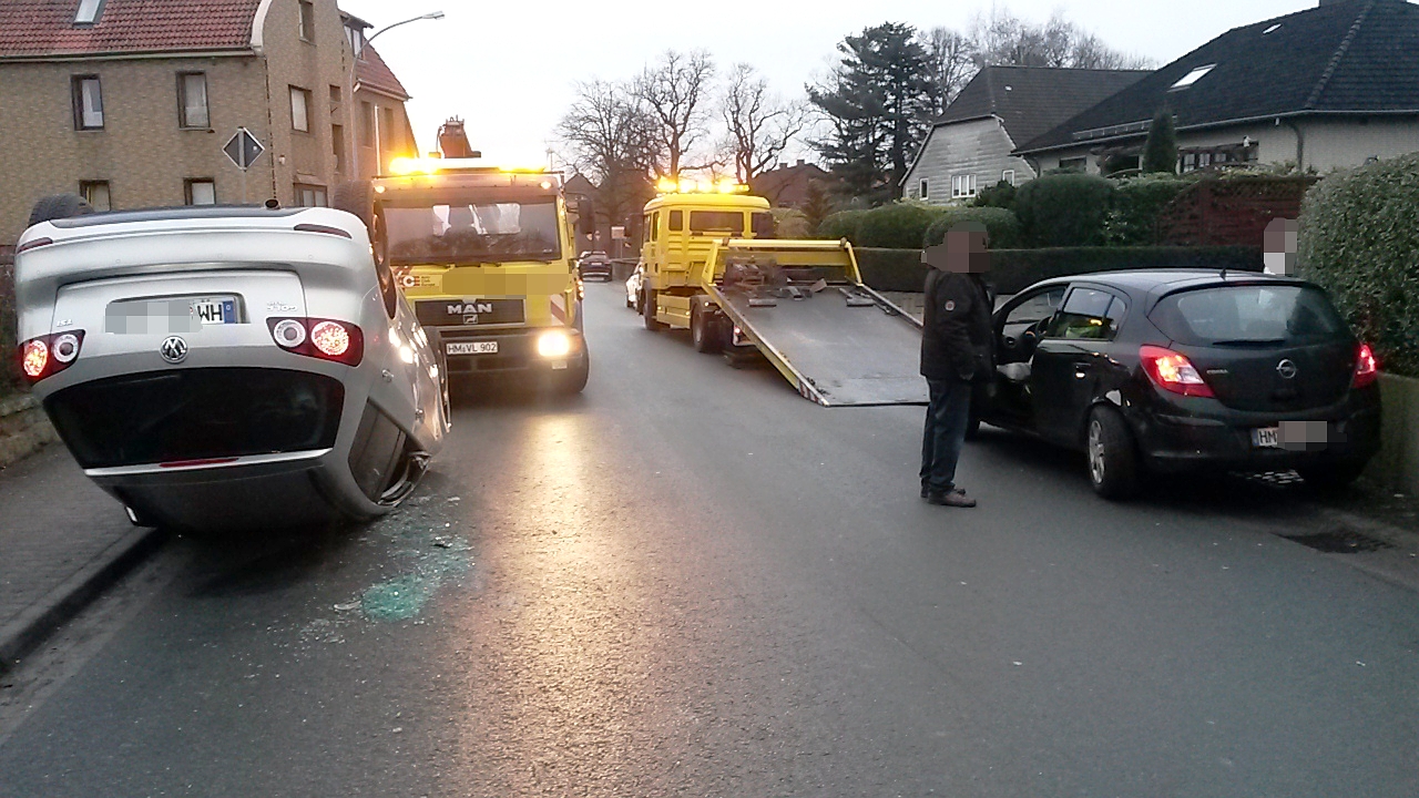 Die 82-jährige Frau aus Hemeringen befuhr mit ihrem VW Golf die Hemeringer Straße ortsauswärts in Richtung Landesstraße 433. Auf Höhe einer Fleischerei wollte sie an einem geparkten Opel Corsa links vorbeifahren. Vermutlich schätzte sie den Seitenabstand zu dem Geparkten falsch ein und prallte mit dem rechten Frontbereich des VW Golf gegen die linke Heckpartie des abgestellten Opel. Während der Opel durch den Aufprall vorwärts gestoßen wurde, kippte der VW Golf auf das Dach.
