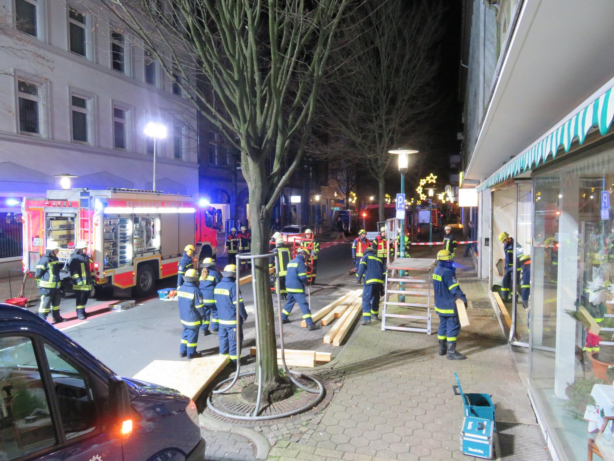 Zusammen mit der Feuerwehr, die vorab alarmiert wurde, da nach den ersten Meldungen von einer eingeklemmten Person ausgegangen werden musste, sicherte das Technische Hilfswerk die Gebäudefront. Gravierende Schäden am Mauerwerk wurden nicht festgestellt.