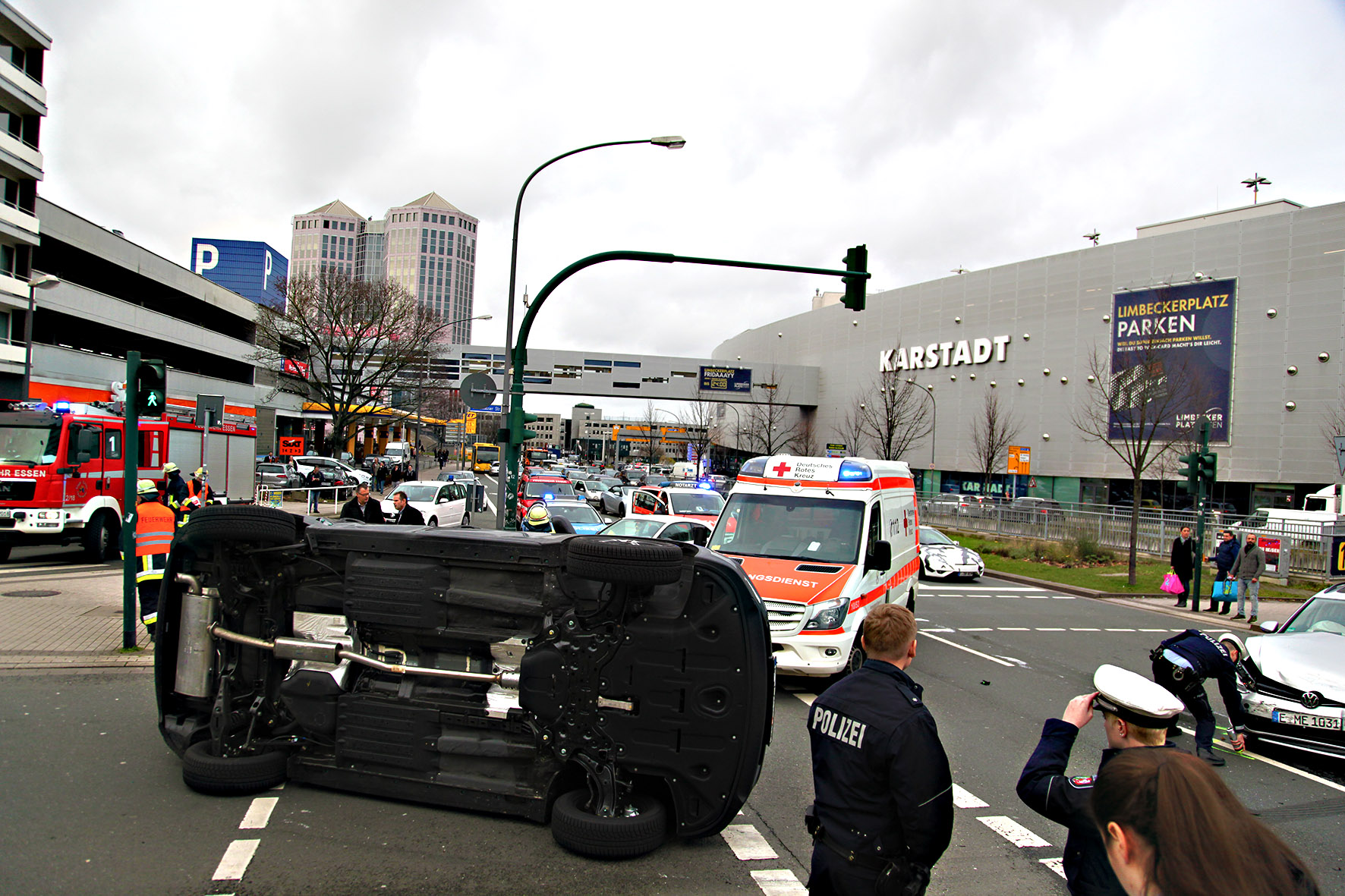 Essen-Westviertel, Kreuzungsbereich Limbecker Platz und Frohnhauser Straße, 05.01.2018, 14.21 Uhr (ots) - Bei einem Verkehrsunfall im Essener Westviertel sind am frühen Nachmittag die 44 Jahre alte Fahrerin eines SUV (Hunday Tucson) sowie der 30 Jahre alte Fahrer eines Golf Variant verletzt worden. Die Kollision war so heftig, dass der Hunday, nachdem er sich um die eigene Achse gedreht hatte, auf die Fahrerseite kippte. Der Golf wurde im Bereich des Vorderwagens stark deformiert. Die erste Meldung, dass eine Person eingeklemmt sei, bestätigte sich glücklicherweise nicht. Beide Fahrer konnten ohne technische Maßnahmen aus ihren Fahrzeugen befreit werden, ein Notarzt versorgte sie. Anschließend wurden beide in naheliegende Krankenhäuser transportiert. Während des Einsatzes kam es zu deutlichen Verkehrsbehinderungen und Rückstaus in Richtung Berliner Platz. Auch auf der Hindenburgstraße staute sich der Verkehr. Der Unfallhergang ist unklar, die Polizei ermittelt. (MF)