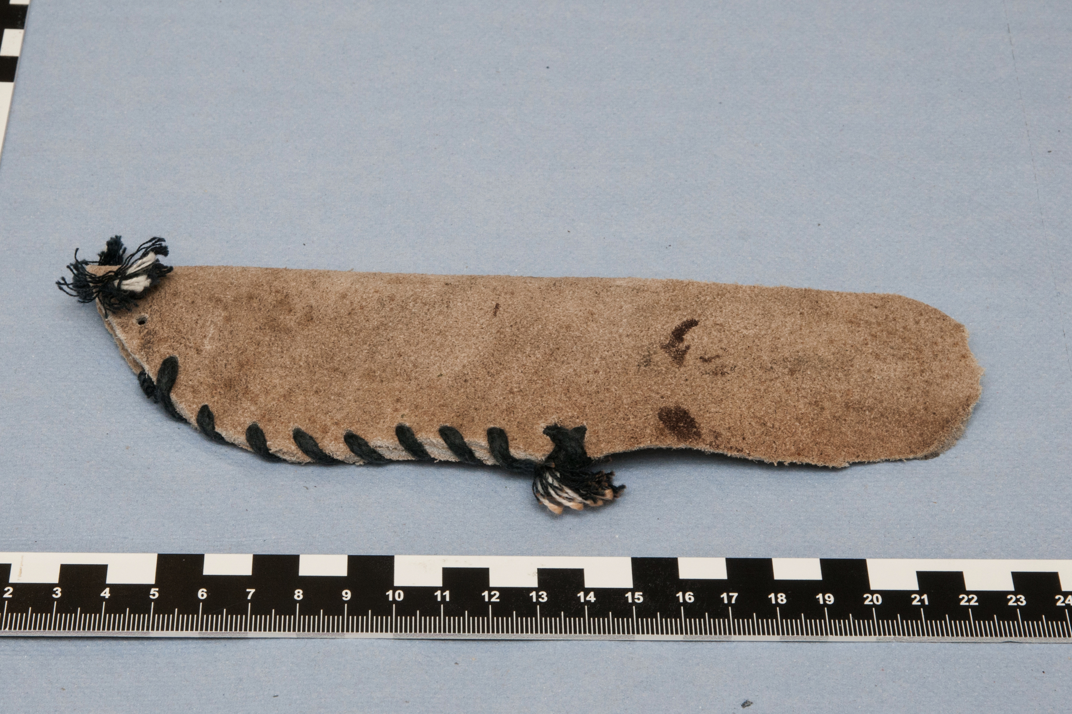 Da der Tatverdächtige offenbar eine sogenannte Messerscheide am Tatort zurückgelassen hatte, sucht die Polizei nun nach dem Besitzer dieses Gegenstands.