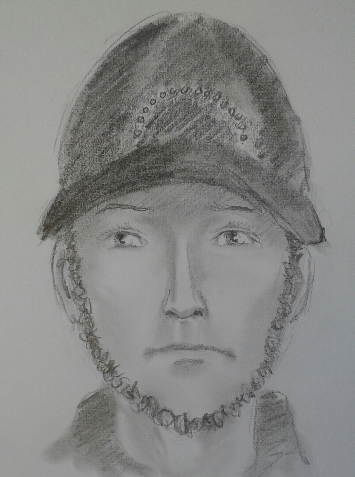 Ergänzend zur Zeichnung liegt folgende Täterbeschreibung vor: Der Täter soll 18 bis 20 Jahre alt und ca. 175 cm groß gewesen sein. Er war schlank, hatte ein jugendliches Erscheinungsbild und einen lockigen Unterkiefer-Kinn-Bart (ca. 2 cm breit). Er sprach akzentfreies Deutsch. Zur Tatzeit war er mit einer Schlabber-Jogginghose und einer dunklen Jacke bekleidet. Er trug ein dunkles Basecap mit Reflexstreifen (vorne im Halbkreis angeordnet) und einen Rucksack.