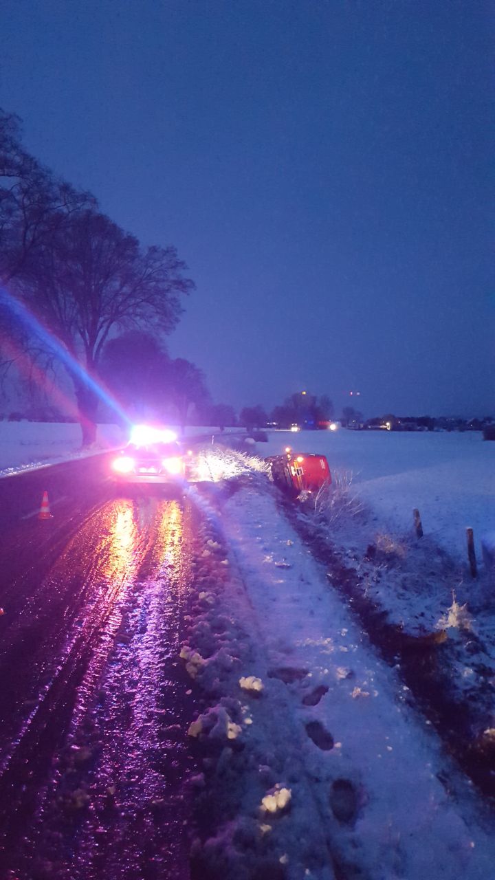 Hameln (ots) - Begleitet durch Blitz und Donner kam es bereits in den frühen Morgenstunden auf Grud starkem Schneefalls und Eisglätte zu zahlreichen Verkehrsunfällen im Landkreis Holzminden, bei denen jedoch niemand verletzt wurde. Insbesondere LKW hatten in den Bereichen Kratzeberg und Neuhaus mit den Wetterverhältnissen zu kämpfen.