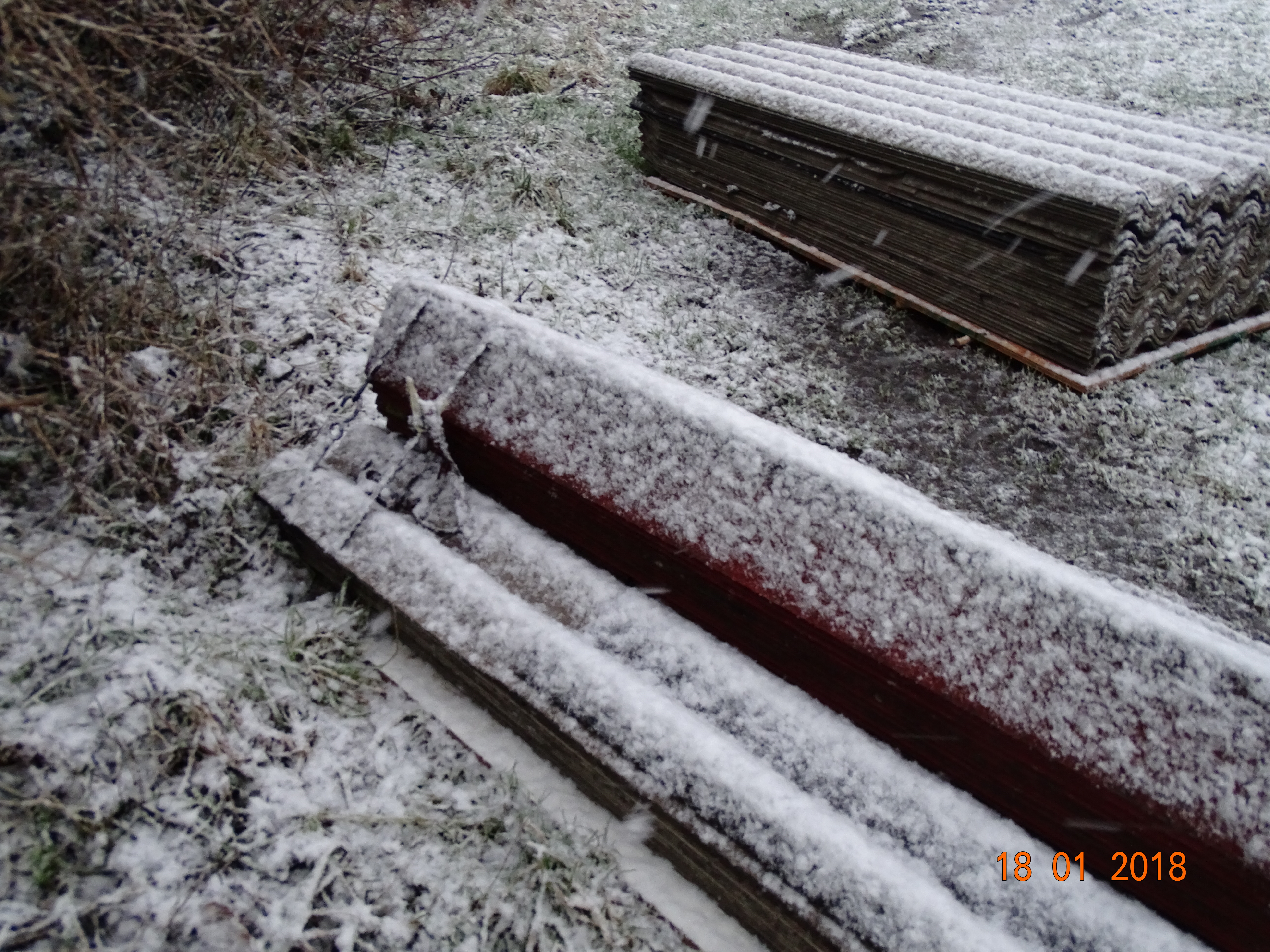 Die beiden Stapel dürften mittels eines größeren Fahrzeugs samt Kran oder Schaufel abgeladen worden sein.