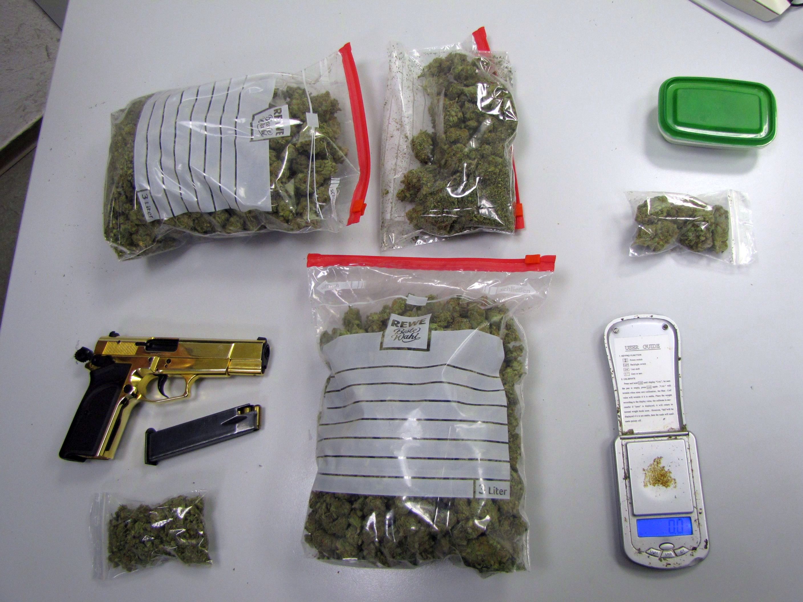 Die Beamten ließen aber nicht locker und fuhren zu dem Mehrfamilienhaus in der Straße Neue Fahrt, in welchem der 39-jährige Beifahrer wohnt. Schon im Treppenhaus und vor allem vor der Wohnungstür des Mannes stieg den Polizisten erneut ein penetranter Drogengeruch in die Nasen. Nachdem ihnen ein Durchsuchungsbeschluss vorlag, schauten sie sich in der Wohnung um und wurden fündig. Sie entdeckten etwa 600 Gramm Marihuana, zwei Gramm Haschisch, eine geladene Schreckschusswaffe und diverses Drogenzubehör.