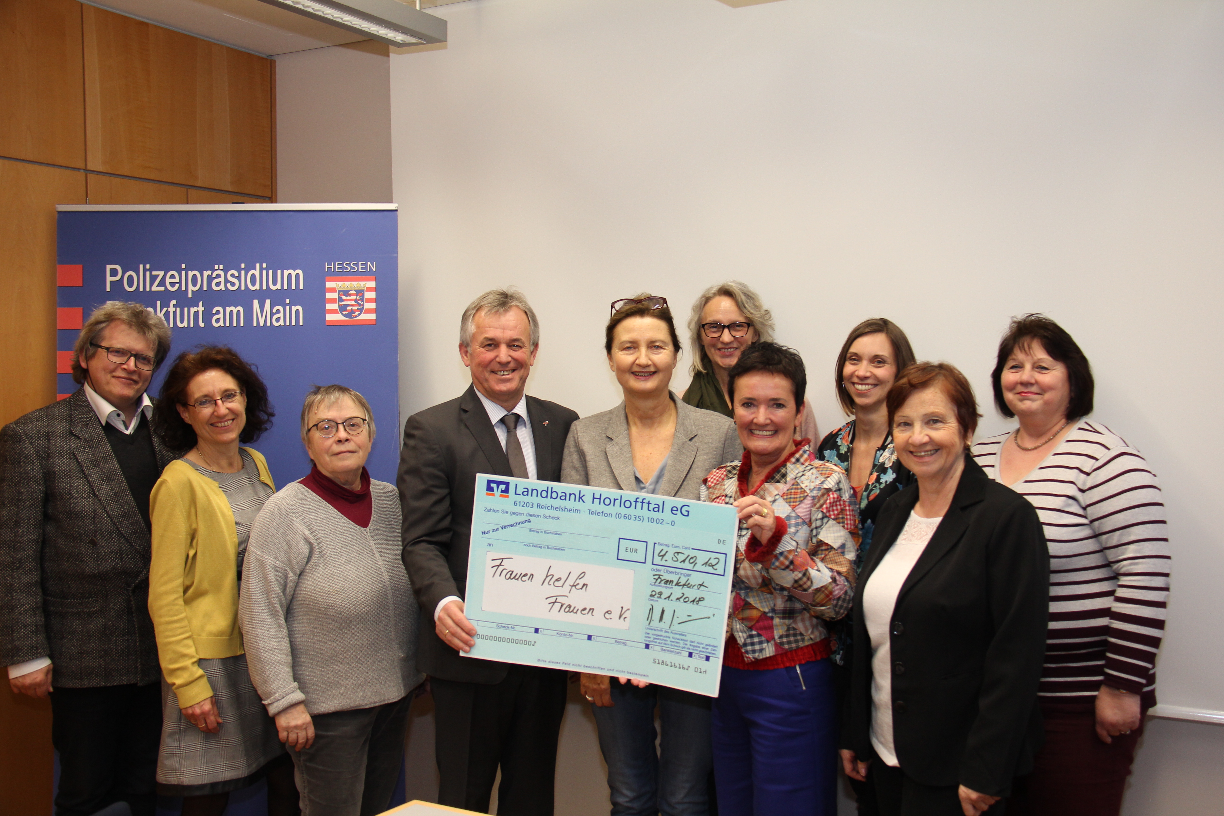 Frankfurt (ots) - (as) Am Montag, den 29. Januar 2018, übergab der Frauenchor des Polizeichors Frankfurt dem Verein "Frauen helfen Frauen Frankfurt" im Beisein des Schirmherrn Herrn Polizeipräsident Gerhard Bereswill eine Spende in Höhe von über 4.500 Euro.