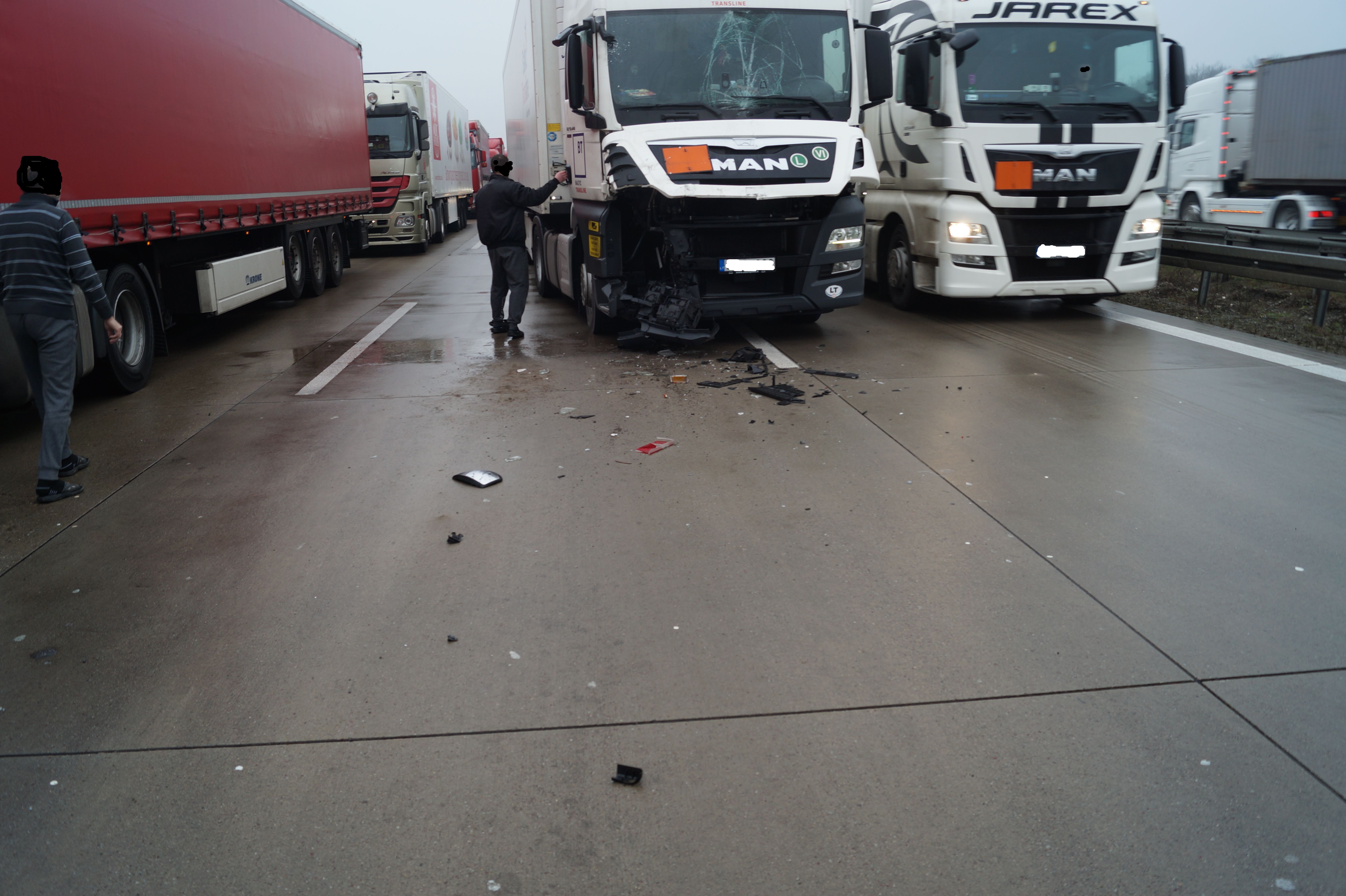 Am Mittwochvormittag ereignete sich auf der A5 unmittelbar vor dem Grenzübergang Weil am Rhein/Basel ein Lkw-Unfall. Der Fahrer eines Sattelzuges aus Russland befuhr die Transitspur in Richtung Grenze und musste anhalten, da die Abfertigungsampel auf Rot umschaltete. Ein hinterherfahrender Sattelzugfahrer erkannte das Ganze zu spät und fuhr mit hoher Wucht auf. Zum Glück wurde niemand verletzt, allerdings entstand hoher Sachschaden. Dieser wurde auf über 100000 Euro geschätzt. Der schwer beschädigte russische Sattelzug musste von einem Spezialfahrzeug abgeschleppt werden. Infolge des Unfalles kam es zeitweise zu erheblichen Verkehrsbehinderungen und einem längeren Rückstau.