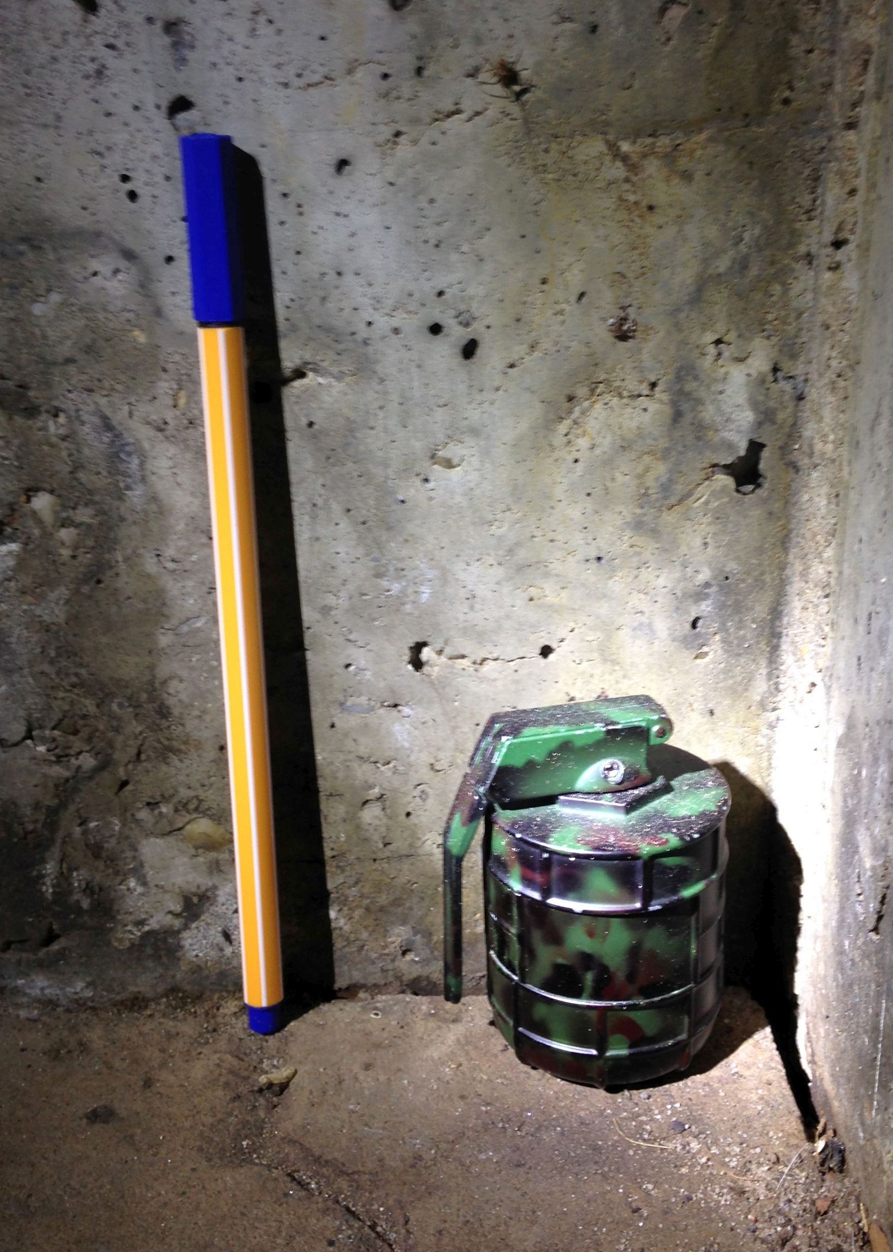 Zeugen hatten an diesem Tag gegen 21.05 Uhr im erwähnten Eingangsbereich der Garagen eine vermeintliche Handgranate entdeckt und umgehend die Polizei verständigt. Nach Hinzuziehung von Experten der Frankfurter Kriminalpolizei und des Hessischen Landeskriminalamtes wurde dann schnell klar, dass es sich bei dem wie eine Handgranate aussehenden Gegenstand um eine Kräutermühle, oder auch Mariuhana-Crusher, handelte.