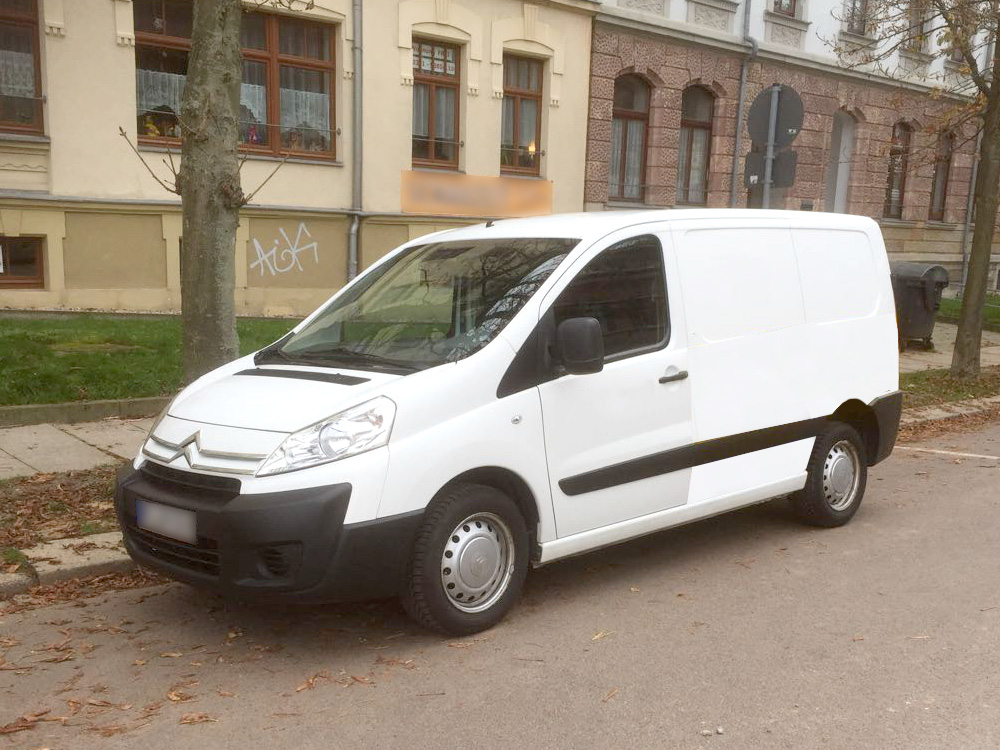 Möglicherweise ist der Gesuchte mit dem abgebildeten weißen Citroen Jumpy aus dem Baujahr 2010 unterwegs.