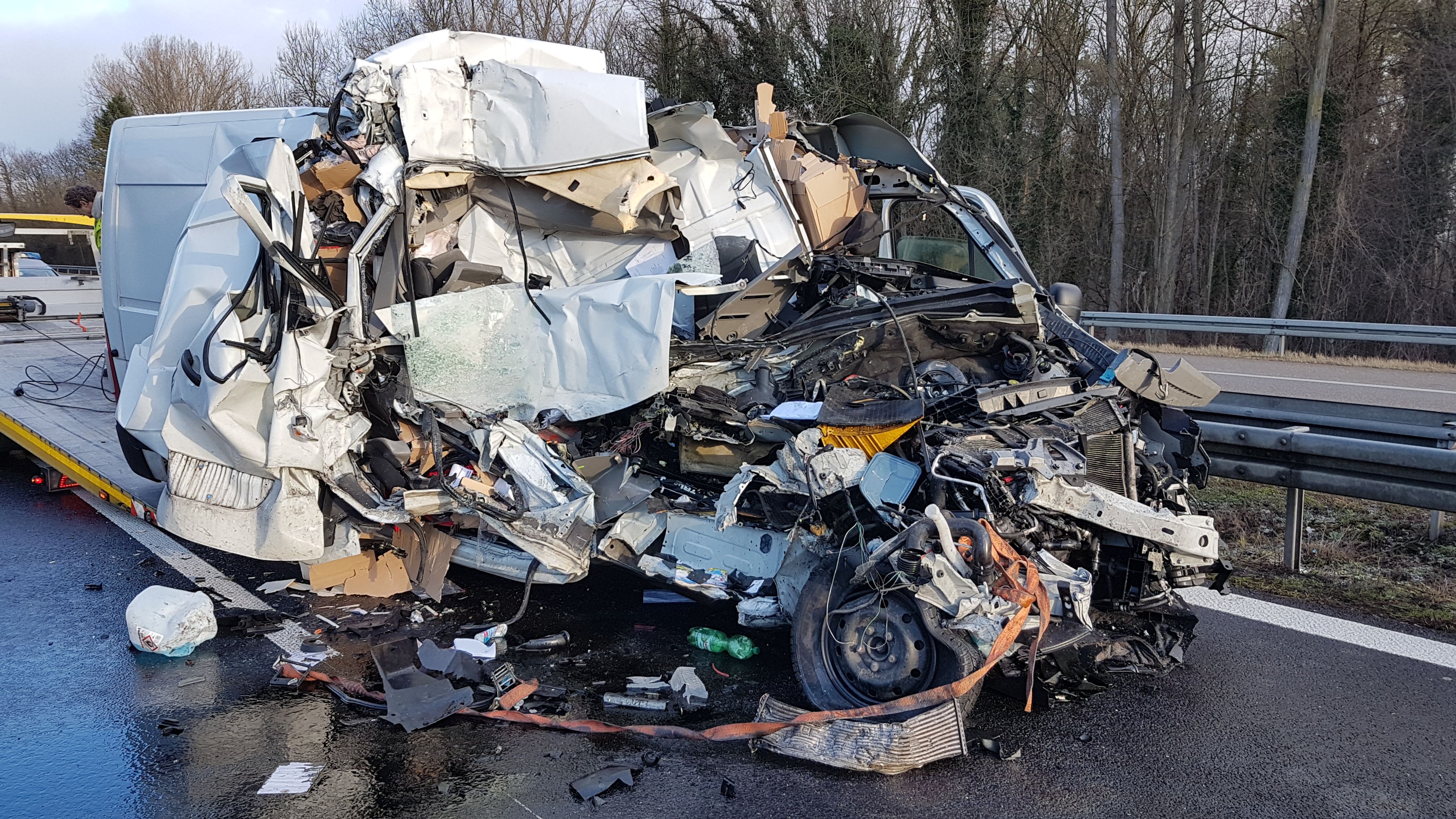 Am frühen Morgen des Rosenmontags ereignete sich auf der A 5 bei Efringen-Kirchen ein schwerer Auffahrunfall. Dieser stand im Zusammenhang mit dem alltäglichen Lkw-Rückstau vor dem Grenzübergang Weil am Rhein/Basel. Kurz vor 7 Uhr verließ ein Sattelzug seine Warteposition auf dem Standstreifen. Der Fahrer wechselte über beide Fahrstreifen auf die Überholspur, ohne auf den von hinten kommenden Verkehr zu achten. Der Fahrer eines Kleintransporters (Sprinter) erkannte die Situation zu spät und fuhr mit voller Wucht in den Auflieger. Hierbei wurde der Sprinter völlig zerstört. Der 30-jährige Fahrer konnte sich selbst aus dem Fahrzeugwrack befreien. Der Mann erlitt schwere Verletzungen und wurde nach notärztlicher Versorgung vom Rettungsdienst ins Krankenhaus gebracht. Es ist nicht ausgeschlossen, dass der Fahrer des Transporters am Steuer eingenickt war. Der Sprinter musste von einem Abschleppwagen bzw. Kranwagen weggebracht werden. Der Sattelzug wurde an der Unfallstelle fahrtüchtig gemacht und steuerte anschließend eine Werkstatt an. Die Unfallstelle war von Fahrzeugteilen und Trümmern übersäht und musste von der Autobahnmeisterei gereinigt werden. Die A 5 in Fahrtrichtung Süden/Schweiz war bis kurz nach 11 Uhr gesperrt. Infolgedessen kam es zu erheblichen Verkehrsbehinderungen und Staus. Der Verkehr wurde an der Ausfahrt Efringen-Kirchen ausgeleitet. Die Sperrung wurde kurz nach 11 Uhr aufgehoben.