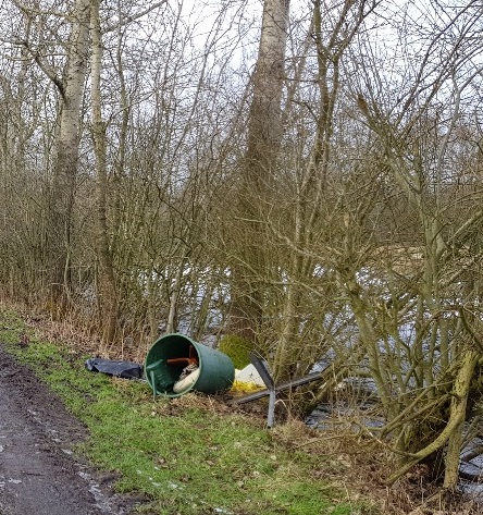 Unter anderem entledigte sich der Verursacher einer Kunststoffregentonne, mehreren Teilen einer Entwässerungsrinne, eines Wäscheständers, verschiedener Sanitärartikel (Rohre, Spülkasten, Waschbecken), eines Schubkarrenrads und diverser Kunststoffkleinteile.
