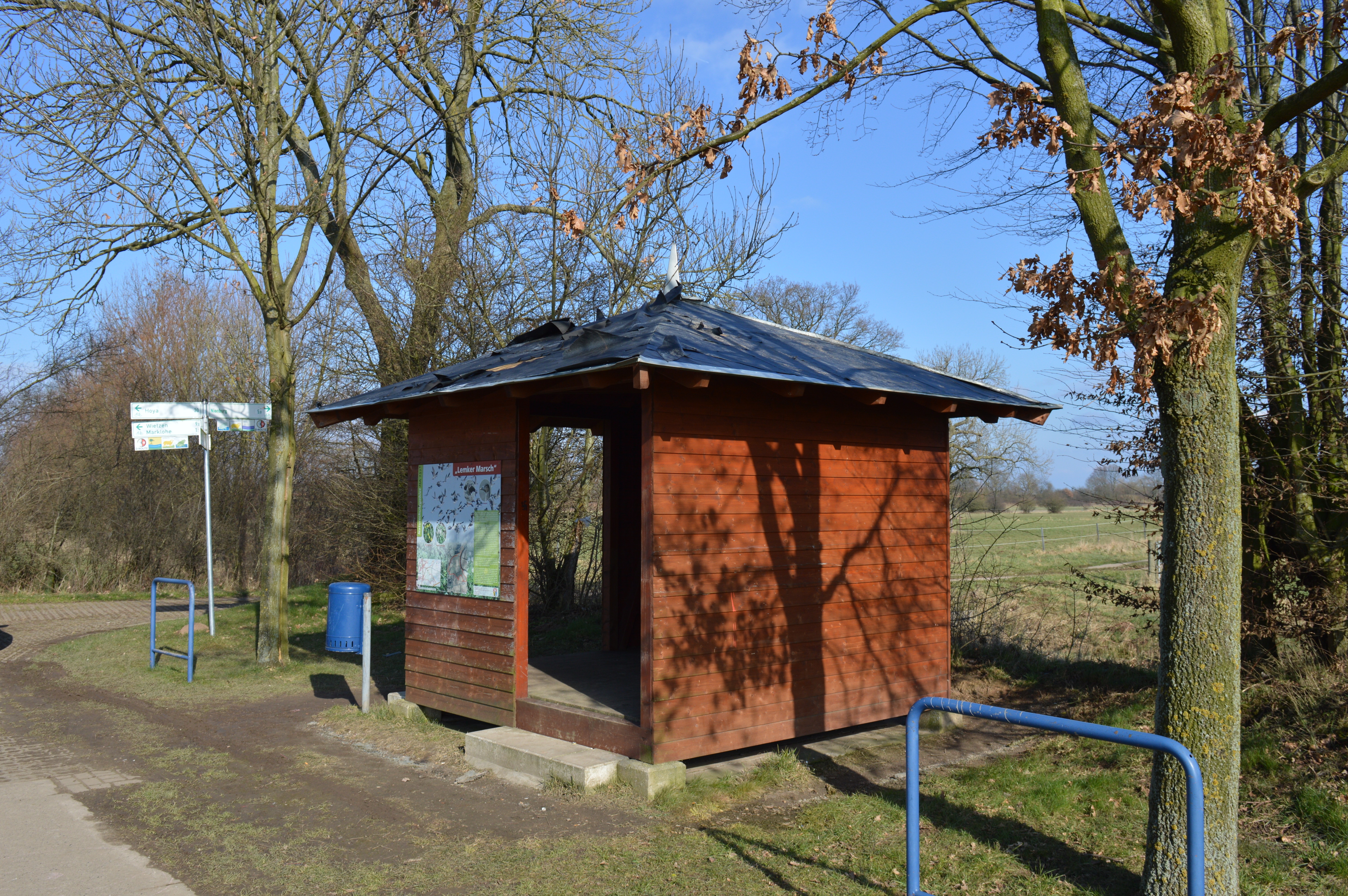 Nienburg (ots) - (BER)Bisher unbekannte Täter entwendeten von einer Schutzhütte bei Marklohe am Weserradweg. Die Hütte in der Lemker Wesermarsch An der Beeke war mit hellgrauen verzinkten Blechen eingedeckt, von denen der oder die Täter drei Dachseiten entfernten und mitnahmen. Die Tat muss im Zeitraum zwischen Mittwoch, 14.02.2018 und dem 21.02.2018 geschehen sein. Die geschädigte Samtgemeinde Marklohe schätzt den Schaden auf ca. 1.500 EUR. Hinweise auf den Verbleib der Metallteile oder den Täter nimmt die Polizei in Nienburg unter 05021 / 97780 entgegen.