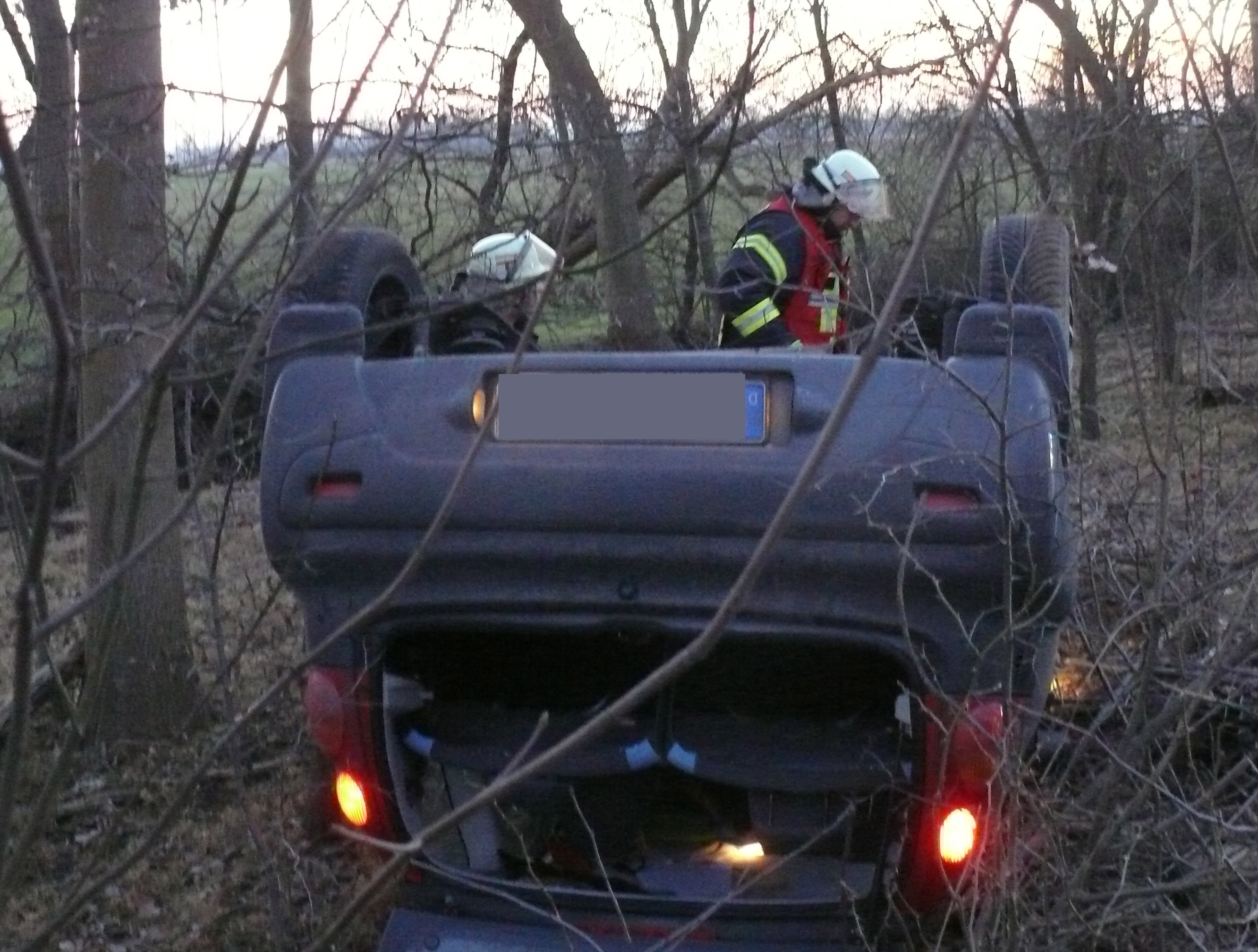 Der 30 Jahre alte Pkw-Fahrer aus Aldenhoven befuhr die B 56 aus Richtung Düren kommend in Fahrtrichtung Jülich. Als er sich gegen 06:50 Uhr zum Beifahrersitz lehnte, wo er etwas zu Essen platziert hatte und nach dem er nun greifen wollte, geriet er in den Gegenverkehr. Ruckartig wollte er seinen Wagen zurück auf seine Fahrbahn lenken. Dabei geriet der Pkw ins Schleudern. Er kam nach rechts von der Straße ab und landete schließlich auf dem Dach. Nachdem ein Ersthelfer dem 30-Jährigen den Kofferraum öffnete, konnte dieser aus dem Auto klettern. Er wurde nach medizinischer Versorgung am Unfallort vorsorglich mit einem Rettungswagen zu einer Untersuchung in ein Krankenhaus gebracht.