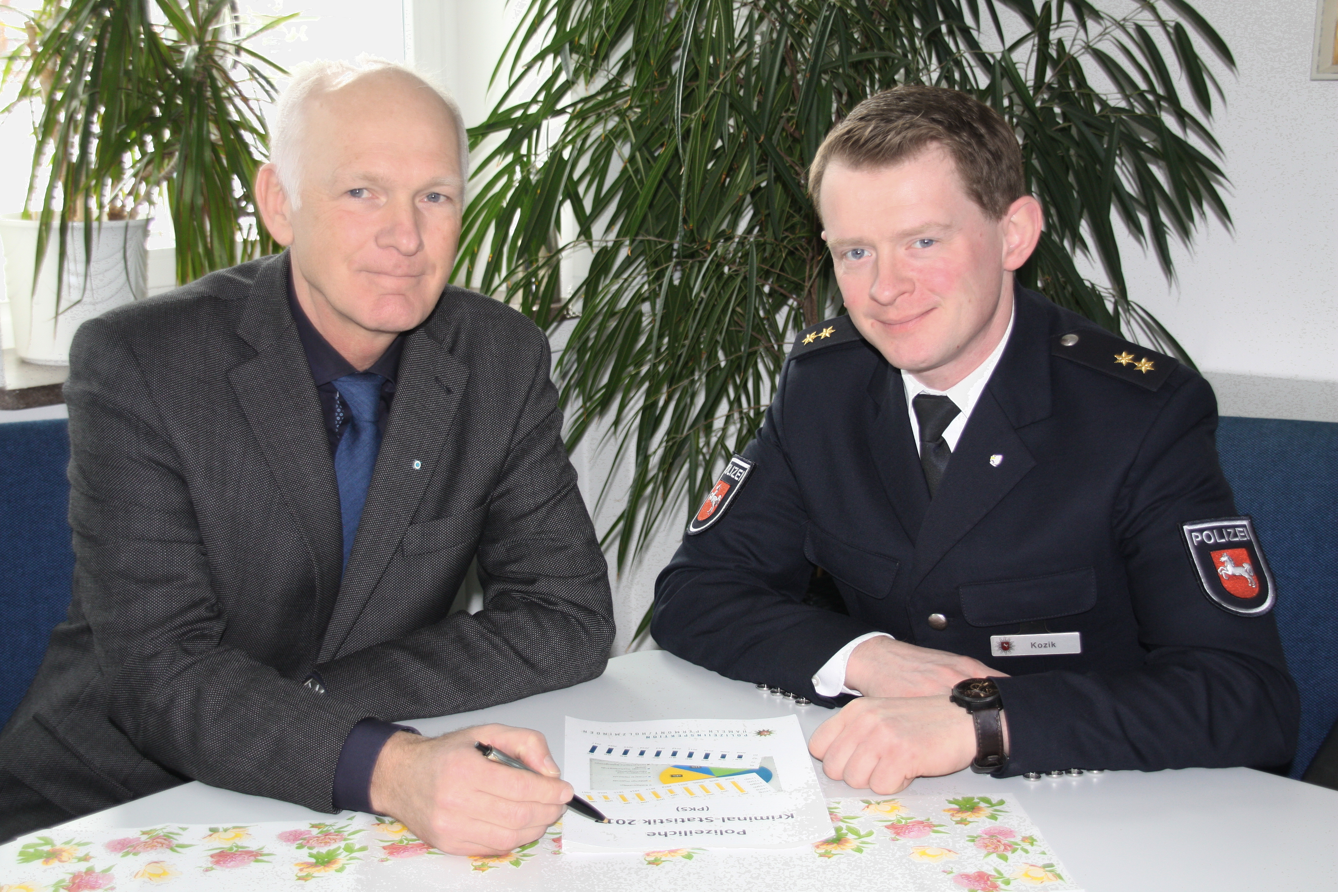 Kriminaldirektor Ralf Leopold, Leiter der Polizeiinspektion Hameln-Pyrmont/Holzminden, und Polizeioberrat Jens Kozik, Leiter des Zentralen Kriminaldienstes, haben heute gemeinsam der Öffentlichkeit und den Medien die Zahlen der "Polizeilichen Kriminalstatistik (PKS)" für 2017 vorgestellt.
