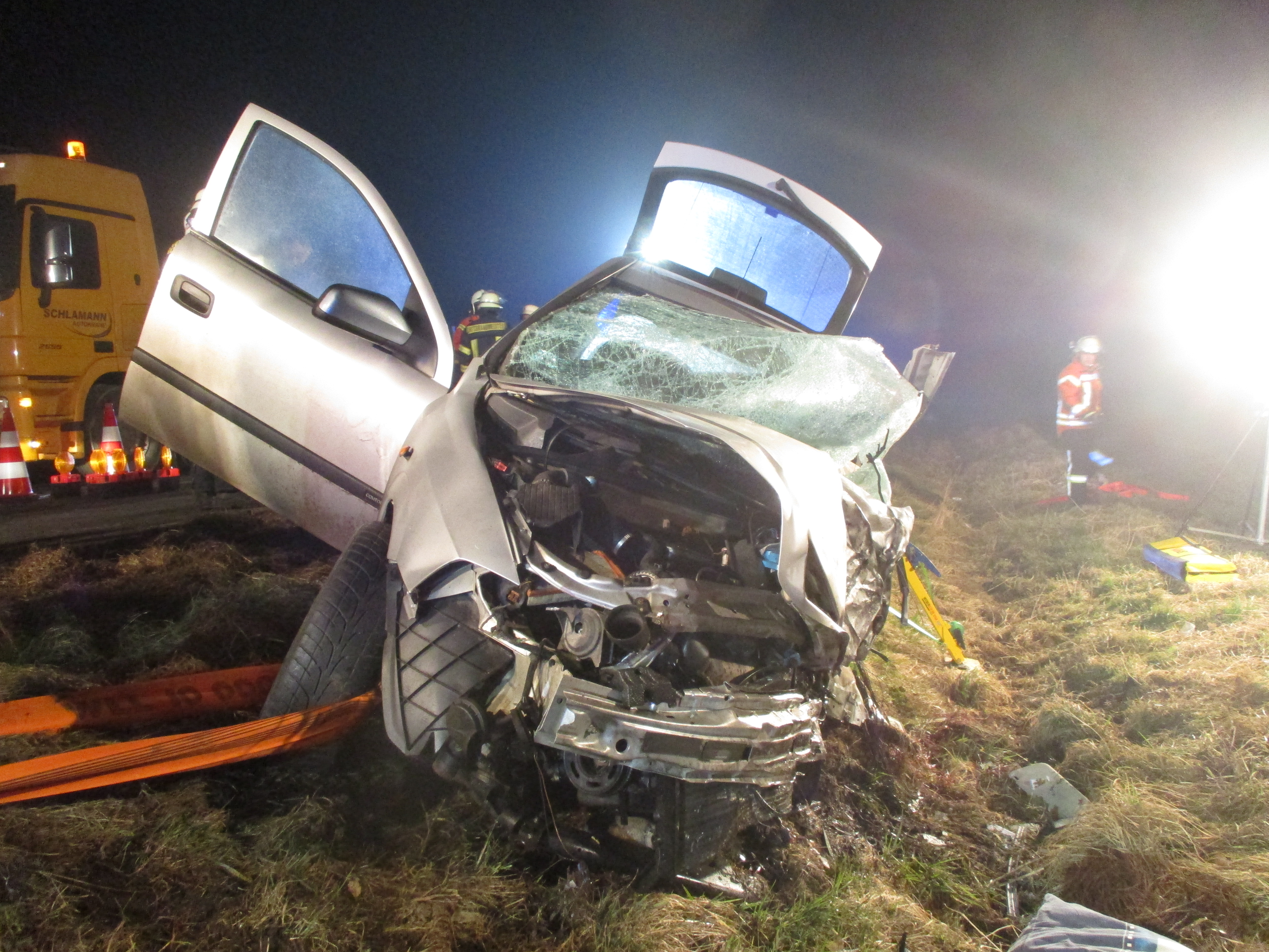 Nienburg (ots) - (BER)Am Mittwochabend, 07.03.2018, gegen 21.00 Uhr, befuhr ein 58 - jähriger Lkw-Fahrer aus Nordhorn die Bundesstraße 214 im Bereich der Gemeinde Steimbke. In einer leichten Kurve zwischen den Ortschaften Rodewald und Wendenbostel geriet ein entgegenkommender Pkw-Fahrer mit seinem Opel auf seine Fahrbahnseite und prallte gegen die Zugmaschine. Der Pkw wurde in den Seitenraum geschleudert, der Lkw kam auf einem benachbarten Acker zum Stehen, der Anhänger kippte um. Der aus Polen stammende Pkw-Fahrer wurde durch Feuerwehrleute aus dem Opel befreit. Er verstarb trotz eingeleiteter Sofortmaßnahmen noch an der Unfallstelle. Der Lkw- Fahrer wurde mit Verdacht auf Frakturen in die Helios-Klinik in Nienburg eingeliefert. Für die Bergungs - und Reinigungsmaßnahmen auf und an der Bundesstraße wurde diese bis gegen 07.15 Uhr gesperrt. Der Bauhof richtete eine Umleitung ein. Feuerwehrleute aus Steimbke, Rodewald, Wendenbostel und Nienburg waren für Bergungsmaßnahmen sowie Absicherung der Unfallstelle eingesetzt. Spezialisten des Dekra werden am Donnerstagmorgen die Unfallstelle gemeinsam mit der Polizei erneut untersuchen.