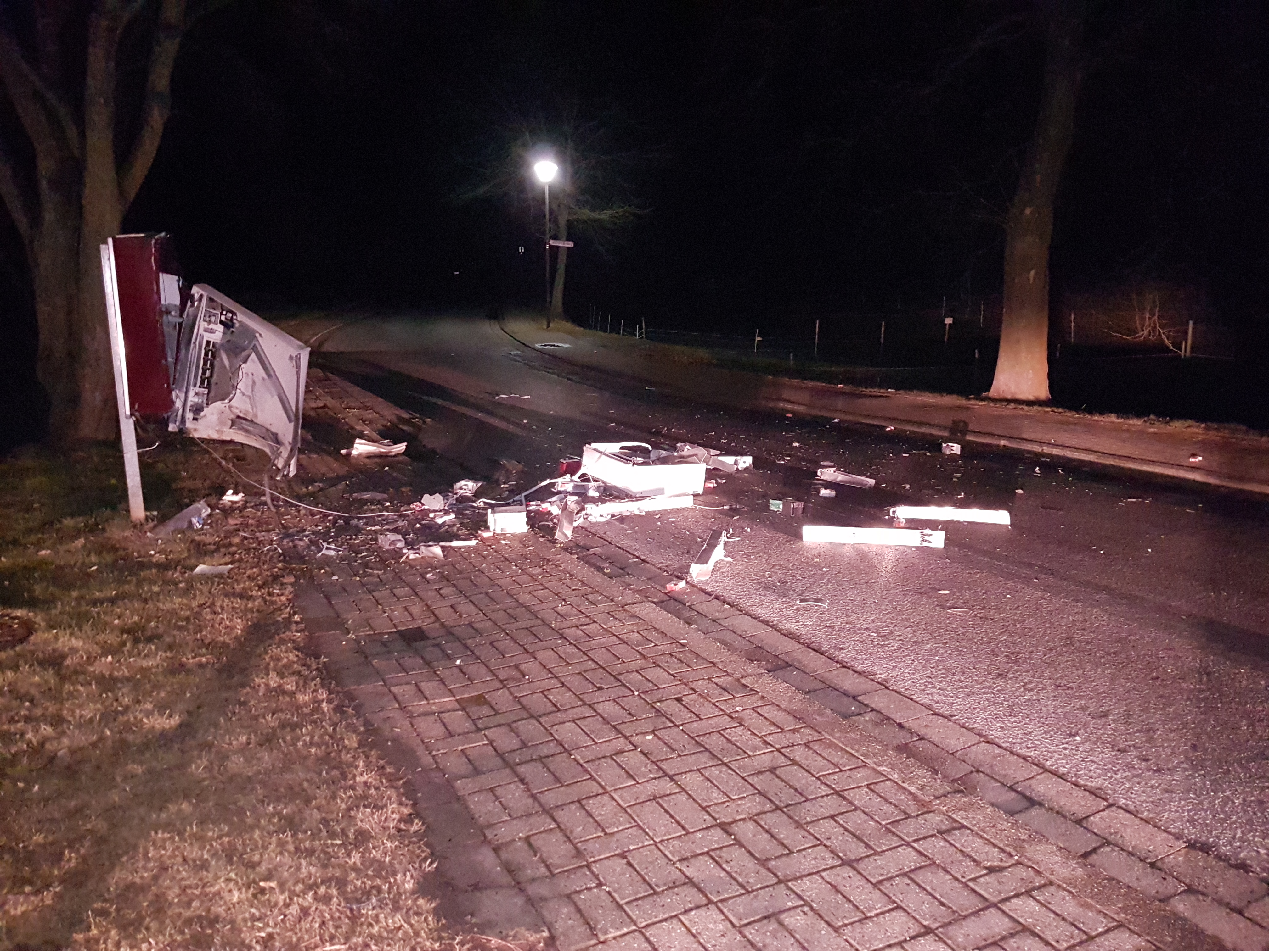 Womit der Automat gesprengt wurde, kann zum jetzigen Zeitpunkt noch nicht gesagt werden. Weitere Untersuchungen der Trümmerteile stehen derzeit noch aus. Den Sachschaden schätzt die Polizei auf ca. 3000 Euro. Die Höhe des Entwendungsschadens ist bislang noch nicht bekannt.