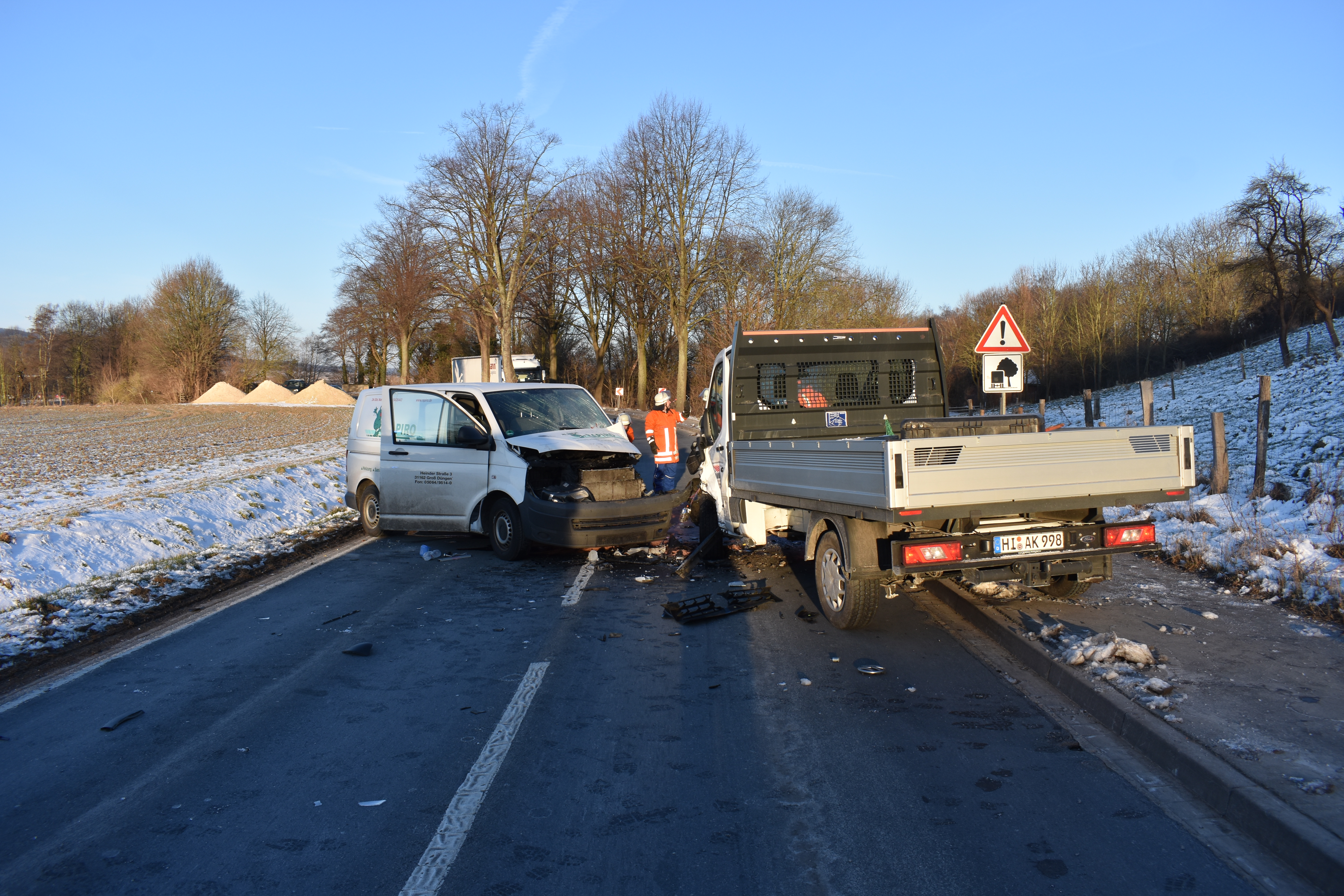 Hildesheim (ots) - Bad Salzdetfurth/Heinde. Am Montagmorgen, gegen 06:50 Uhr, kam es auf der Landstraße zwischen Heinde und Groß Düngen zu einem Frontalzusammenstoß zweier Fahrzeuge. Zur Unfallzeit befuhr ein 22-jähriger aus Harsum, mit einem Firmenfahrzeug, Die Straße aus Richtung Groß Düngen in Richtung Heinde. Am Ende einer Rechtskurve kam er dann, aus bisher ungeklärter Ursache, nach Links von seinem Fahrstreifen ab und geriet in den Gegenverkehr. Dort prallte er dann gegen den entgegenkommenden Firmenpritschenwagen einer 19-jährigen Hildesheimerin, die nicht mehr ausweichen konnte. In Folge dieses Unfalles wurden beide Beteiligten verletzt und in ein Hildesheimer Krankenhaus verbracht. Die verunfallten Fahrzeuge waren nicht mehr fahrbereit und mussten durch ein Abschleppunternehmen geborgen werden. Die Fahrbehn war während dieser Zeit in beiden Richtungen voll gesperrt, so dass es zu Verkehrsbehinderungen kam. Da auch Betriebsstoffe ausgetreten waren, war die Ortsfeuerwehr Heinde mit 15 Mann vor Ort. Gegen 08:00 Uhr konnte die Fahrbahn wieder freigegeben werden (Lö).