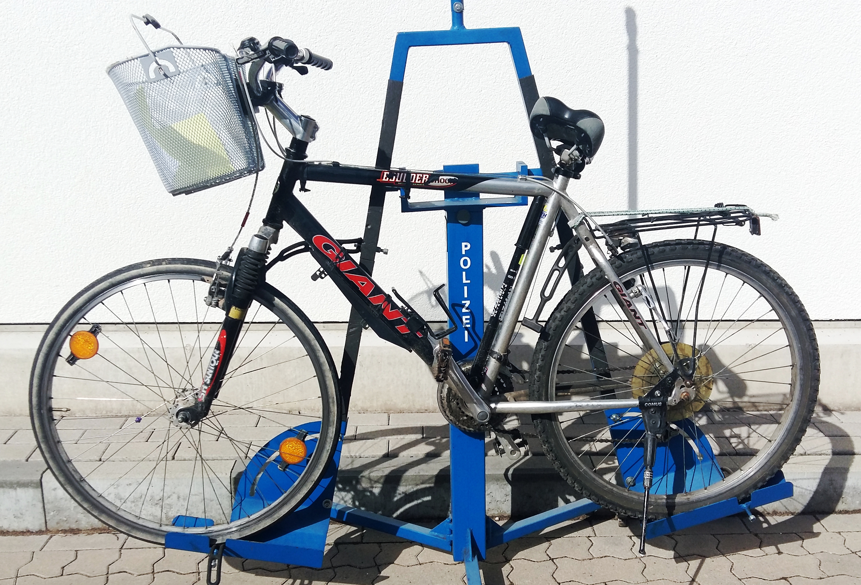 Im Rahmen ihrer Ermittlungen sucht die Polizei den Eigentümer des zurückgelassenen Fahrrades, einem schwarzen Giant-Herrentrekkingrad. Auffällig dabei: am Lenker ist ein hell-grauer Metall-Fahrradkorb angebracht; am Gepäckträger befindet sich ein grün-gestreifter Spanngurt. Im Fahrradkorb lag eine Druckertonerkartusche.
