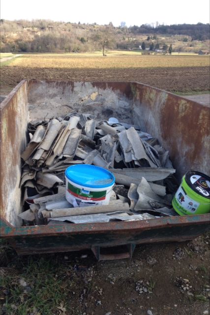 Durch eine Streife des Polizeipostens Kenzingen wurde Anfang März am Ende der Grünstraße, ca. 300 Meter nördlich des Grünsees, eine offene Transportmulde entdeckt. In dieser lagerten größere Bruchmengen asbesthaltiger Faserzementplatten. Im Rahmen weiterer Ermittlungen durch Beamte des Polizeipräsidiums Freiburg, Gewerbe/Umwelt, stellte sich heraus, dass der gefährliche Abfall illegal durch unbekannte Personen in der Mulde entsorgt wurde. Neben dem Faserzementplattenbruch (Eternitplatten) konnten auch noch zwei gefüllte Farbeimer mit Dispersionsfarbe in der Mulde festgestellt werden. Die Unbekannten gefährdeten durch ihr Handeln nicht nur sich selbst, sondern auch die Öffentlichkeit. Es ist davon auszugehen, dass die Faserzementplatten schon im Bereich des Demontageortes im Raum Herbolzheim zerbrochen und in der Folge mittels Anhänger oder Lkw zur Mulde verbracht und dort abgeladen wurden.