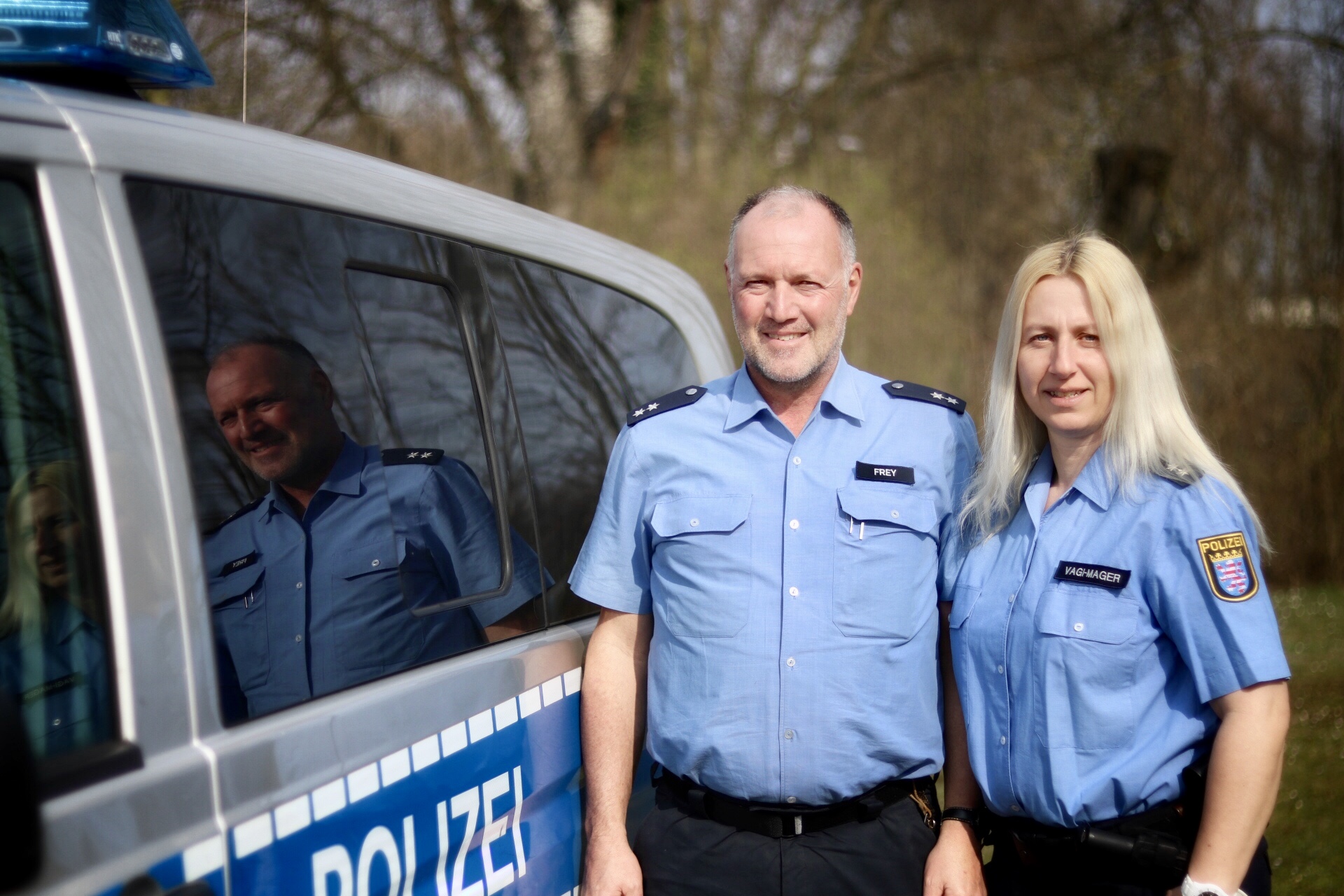 Im Rahmen einer kleinen Feierstunde wurden die 41 Jahre alte Polizeioberkommissarin Katja Vagi-Mager und der 54-jährige Polizeioberkommissar Günther Frey vom Hessischen Innenminister Peter Beuth und dem Präsident des Polizeipräsidiums Südhessen, Bernhard Lammel, in ihr neues Amt als "Schutzfrau und -mann vor Ort" eingeführt.