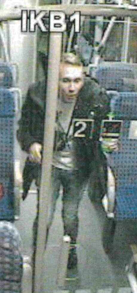 Schon in der Regionalbahn sind die Männer von einer Überwachungskamera erfasst worden. Mit einem richterlichen Beschluss sind die Fotos nun zu Veröffentlichung in den Medien freigegeben.