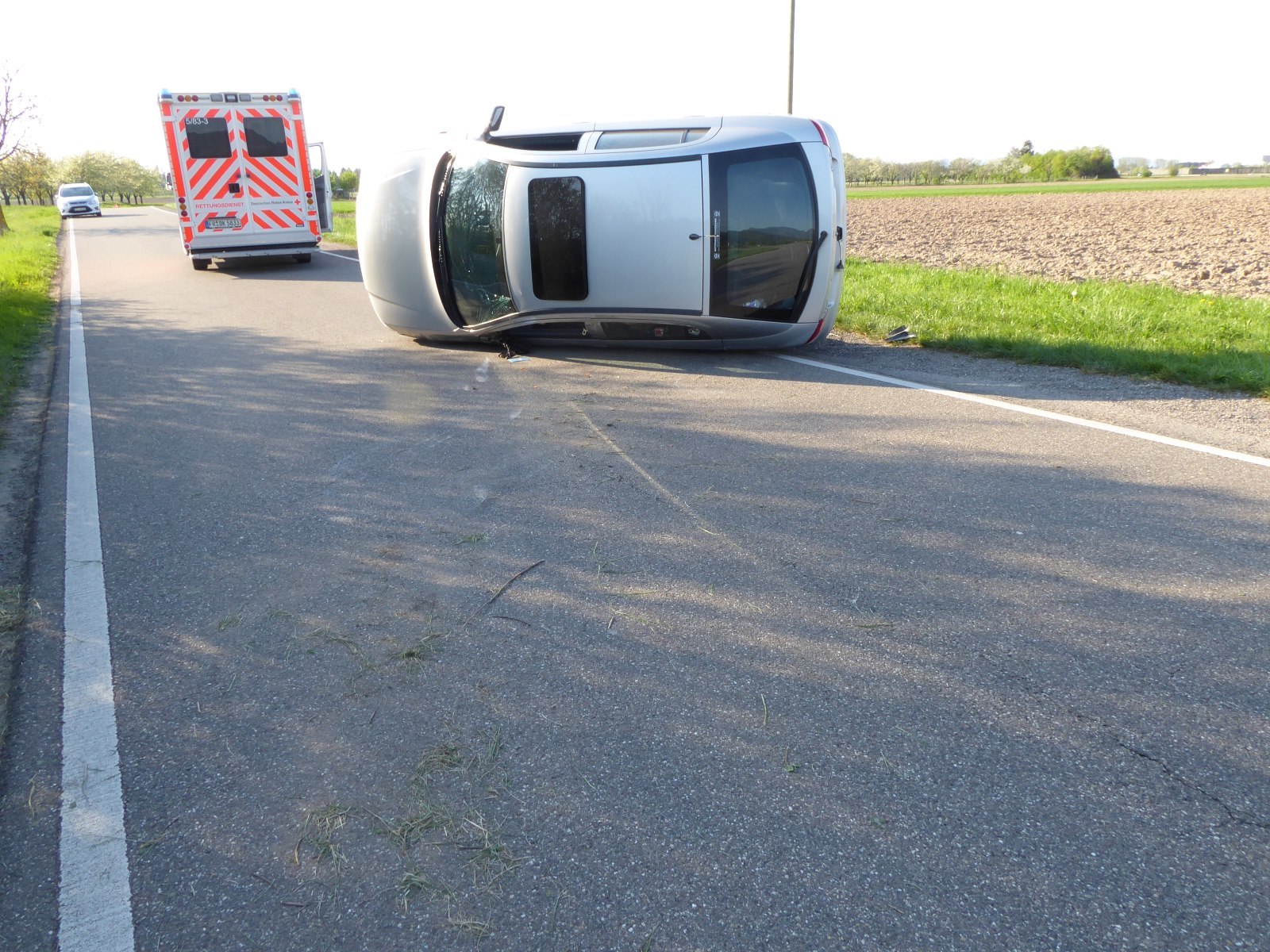 Freiburg (ots) - Am Donnerstagabend, 19. April, kam ein 18-jähriger Pkw-Lenker von der Fahrbahn ab und überschlug sich. Der Fahranfänger fuhr vermutlich mit nicht angepasster Geschwindigkeit, weswegen er gegen 18.30 Uhr in einer Kurve die Kontrolle über seinen Pkw verlor. Der Pkw steuerte zuvor auf den Grünstreifen und kam dann mitten auf der Fahrbahn, auf der linken Fahrzeugseite liegend, zum Stehen. Verletzt wurde bei dem Unfall niemand.