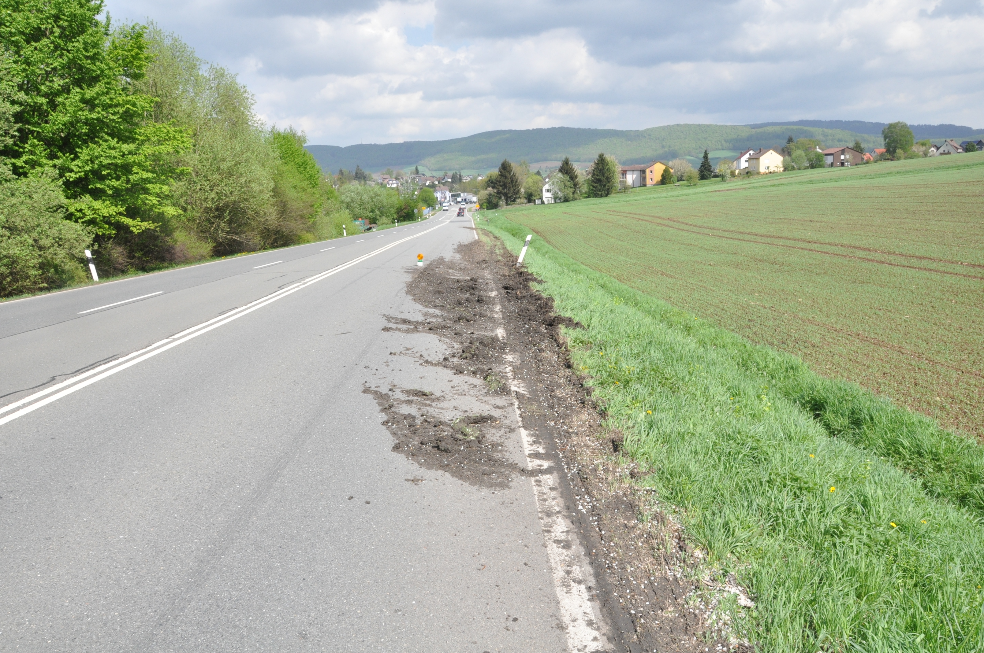 Eschershausen (ots) - Am Montag, 23.04.18, gegen 12.40 Uhr wurde die Polizei informiert über eine Gefahrenstelle durch aufgewühltes Erdreich auf der Bundesstraße B64 (Negenborn - Eschershausen). Auf der geraden Gefällestrecke unmittelbar vor der Ortschaft Eschershausen hat ein bisher nicht bekannter Lkw nach Abkommen von der Fahrbahn nach rechts wohl schlimmeres verhindern können und ist nach gegenlenken zurück auf die Fahrbahn gelangt.