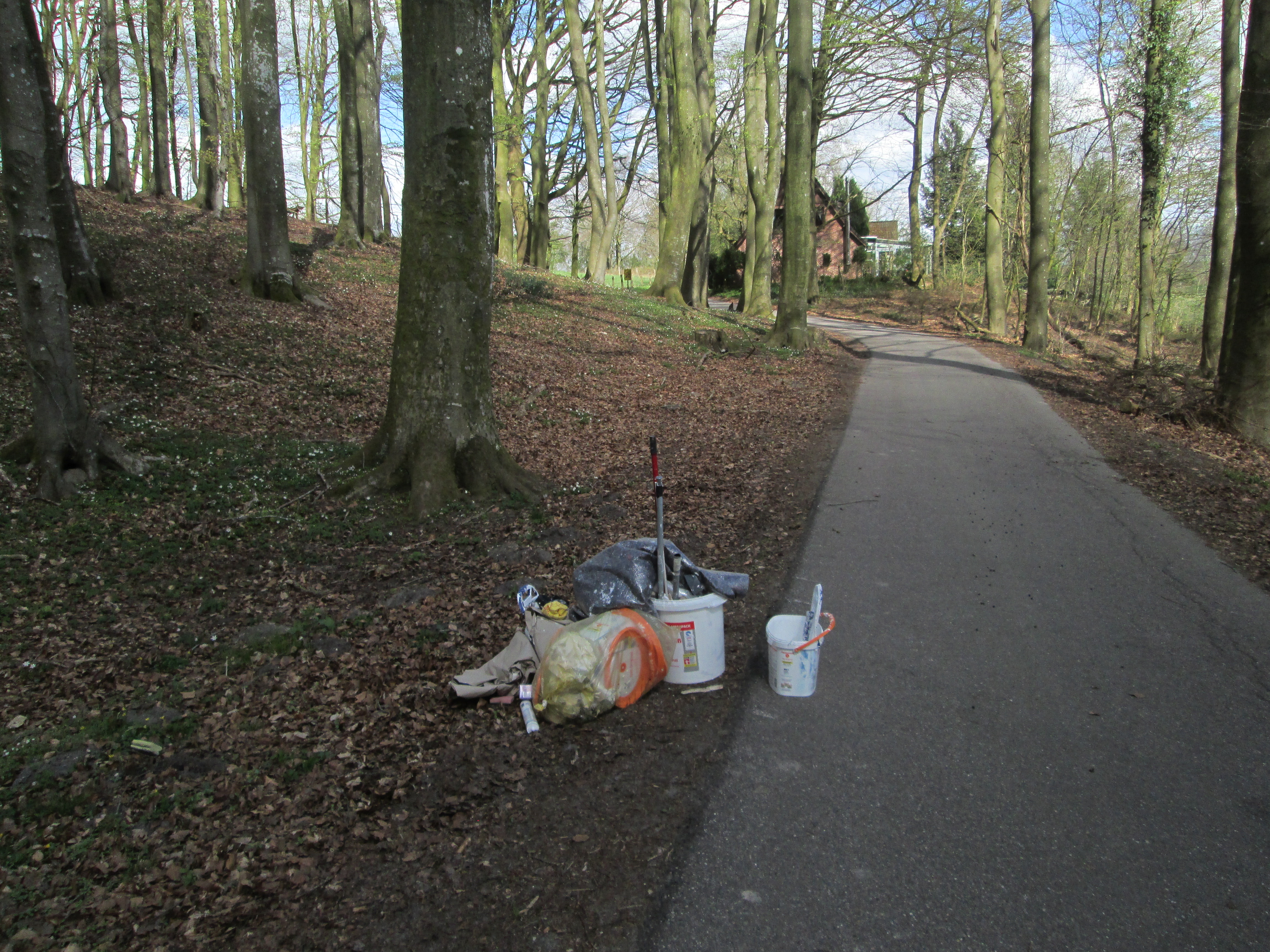 Oeversee (ots) - Am Montagnachmittag (23.04.18) wurde bei der Polizeistation in Tarp eine Anzeige wegen unerlaubter Abfallentsorgung aufgenommen. Im Waldweg in Oeversee wurden Malerutensilien abgeladen. Farbeimer mit Farbresten, Kleister etc. wurden dort am Wegesrand illegal entsorgt. Die Beamten gehen davon aus, dass der Müll mit einem Fahrzeug in den Wald gebracht wurde. Da dieser Weg bei Fußgängern und Reitern beliebt ist, hoffen die Ermittler auf Zeugen oder Hinweisgeber. Diese werden gebeten, sich unter der Rufnummer 04638-89410 zu melden.