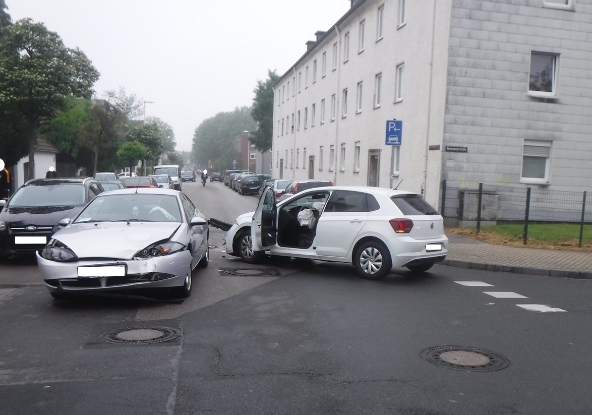 Eine 39-Jährige aus Düren befuhr gegen 11:44 Uhr mit ihrem Pkw die Gneisenaustraße und beabsichtigte nach rechts in die Girbelsrather Straße abzubiegen. Zeitgleich war der 70-jährige Dürener mit seinem Auto auf der Girbelsrather Straße in Richtung Friedrich-Ebert-Platz unterwegs. Dabei kam es zu einem Zusammenstoß beider Fahrzeuge im Einmündungsbereich beider Straßen.