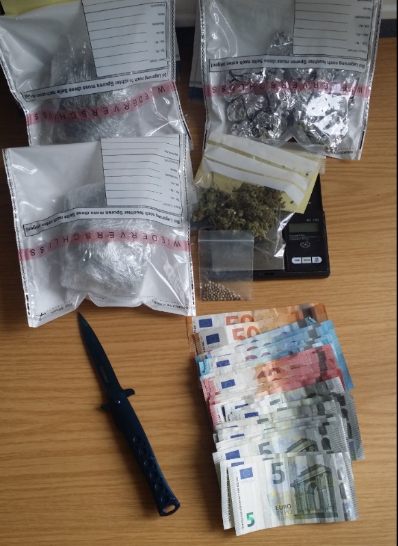 Nienburg (ots) - NIENBURG (jah) - Eine zivile Polizeistreife erkannte am gestrigen Tag im Nienburger Stadtgebiet einen 22jährigen Nienburger, gegen den ein Haftbefehl wegen Diebstahls vorlag. Prompt wurde der Mann zur Dienststelle nach Nienburg verbracht. Bei der Inaugenscheinnahme seiner mitgeführten Kleidung und eines Rucksackes stellten die Beamten eine nicht geringe Menge von Betäubungsmitteln (Cannabis), eine Feinwaage, Verpackungsmaterial, Bargeld im höheren dreistelligen Bereich sowie Cannabissamen fest. Das Cannabis war bereits in unterschiedliche Verpackungsgrößen portioniert. Zusätzlich führte der Nienburger ein griffbereites Einhandmesser mit sich. Der amtsbekannte Nienburger wurde nach Einleitung eines Strafverfahrens wegen Verstoßes gegen das Betäubungsmittelgesetz der zuständigen Justizvollzugsanstallt übergeben. Das durch ihn mitgeführte Einhandmesser wird dabei die Aussicht auf Strafmilderung im festgestellten Fall nicht verbessern.