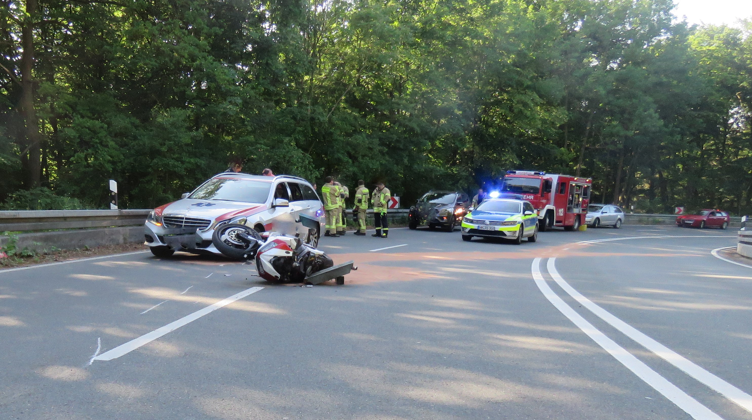 Bad Pyrmont / L430 Hagener Berg (ots) - Am Sonntag, 20.05.18, 16:50 Uhr, verunglückte ein 19 jähriger Motorradfahrer aus Lügde in Bad Pyrmont am sogenannten "Hagener Berg" tödlich. Beim Durchfahren einer Linkskurve verlor er, vermutlich aufgrund überhöhter Geschwindigkeit, die Kontrolle über sein Kraftrad, stürzte und kollidierte mit der Schutzplanke. Dabei zog er sich derart schwere Verletzungen zu, dass er noch an der Unfallstelle verstarb. Das verunfallte Motorrad kollidierte mit einem entgegenkommenden Pkw. Das Fahrzeug wurde durch den Zusammenstoß beschädigt, der Fahrzeugführer leicht verletzt. Die L430 blieb während der gesamten Unfallaufnahme gesperrt.
