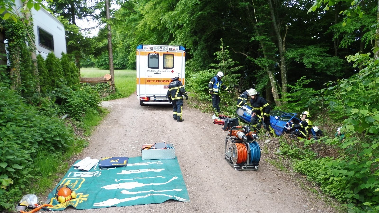 Ein spektakuläres Geschehnis spielte sich am Mittwochnachmittag im Ortsteil Langenau ab. Eine 23-jährige Frau wollte mit ihrem Opel Corsa in der Straße "Im Vogelsang" wenden. Dabei hatte die junge Frau große Mühe und würgte den Motor mehrfach ab. Als das Auto immer schräger auf der Straße stand, kam ein Mann zu Hilfe und gab ihr Anweisungen. Als die Frau aus dem Auto stieg, rollte das Auto rückwärts. Der Zeuge gab der Frau Anweisung, auf die Fußbremse zu stehen. In der Aufregung verwechselte sie das Pedal und trat auf die Kupplung. Daraufhin rollte das Auto davon und riss mit der offen stehenden Türe beide Personen mit sich. Während sich der Zeuge und Helfer befreien konnte, verklemmte sich der Fuß der Fahrerin. Sie wurde vom Auto mitgezogen, das von der Straße eine Böschung hinunterrollte und in einem Graben steckenblieb. Feuerwehrleute befreiten die Unglückliche, die anschließend vom Rettungsdienst behandelt wurde. Die Frau hatte großes Glück und zog sich keine gravierenden Verletzungen zu. Das Auto wurde durch die Freiwillige Feuerwehr herausgezogen und wurde anschließend abgeschleppt. Es entstand Sachschaden von etwa 2000 Euro.