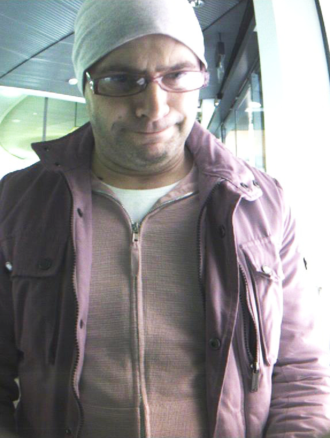 Der Dieb trägt in der Regel eine Kopfbedeckung (Cap oder Strickmütze) und eine Brille.