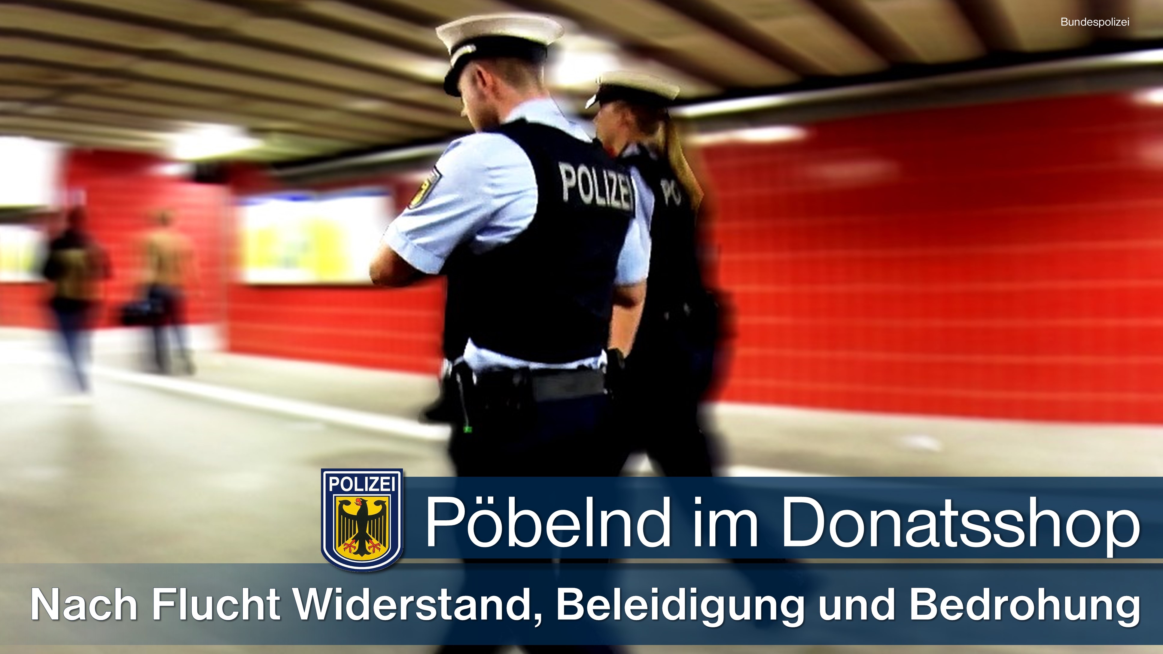 München (ots) - Ein 44-Jähriger, der am Samstagabend (16. Juni) in einem Kaffee- und Donatsladen im Ostbahnhof zunächst Reisende bepöbelte, dann vor eintreffenden Bundespolizisten flüchtete und sich diesen in Angriffshaltung präsentierte, versuchte die Beamten bei der Mitnahme zu beißen; zudem beleidigte und bedrohte er die Bundespolizisten.
