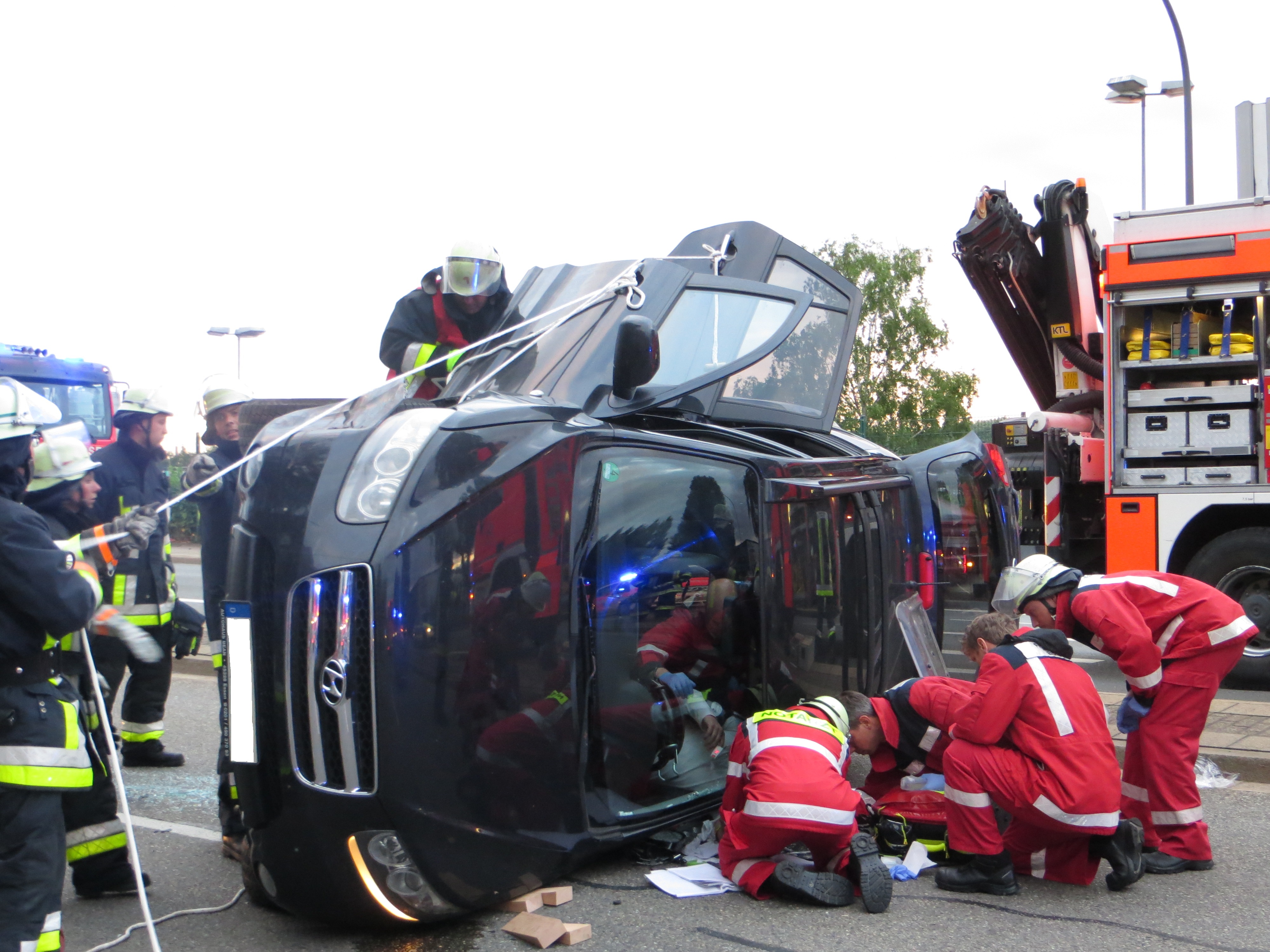 Essen Ostviertel, Burggrafenstraße, 17.06.2018, 05:18 Uhr (ots) - Am Morgen des 17.06.2018, um 05:18 Uhr kam es auf der Burggrafenstraße in Richtung Huttrop zu einem schweren Verkehrsunfall. Der Fahrer eines SUV kam dabei von der Fahrbahn ab und rammte einen am Fahrbahnrand geparkten PKW und überschlug sich anschließend. Der geparkte PKW wurde in eine Laterne geschoben und schwer beschädigt. Der Knall war auf der nahegelegenen Hauptfeuerwache zu hören. Der Insasse des SUV war bei Eintreffen der Feuerwehr ansprechbar und in seinem auf der Seite liegenden PKW eingeschlossen. Mittels hydraulischem Rettungsgerät wurde die schwer verletzte Person aus dem Fahrzeug befreit und im Anschluss in ein Krankenhaus transportiert. Die Burggrafenstraße war für circa 1,5 Stunden in Richtung Huttrop gesperrt. Die Polizei hat die Ermittlungen zur Unfallursache übernommen. (SKE)