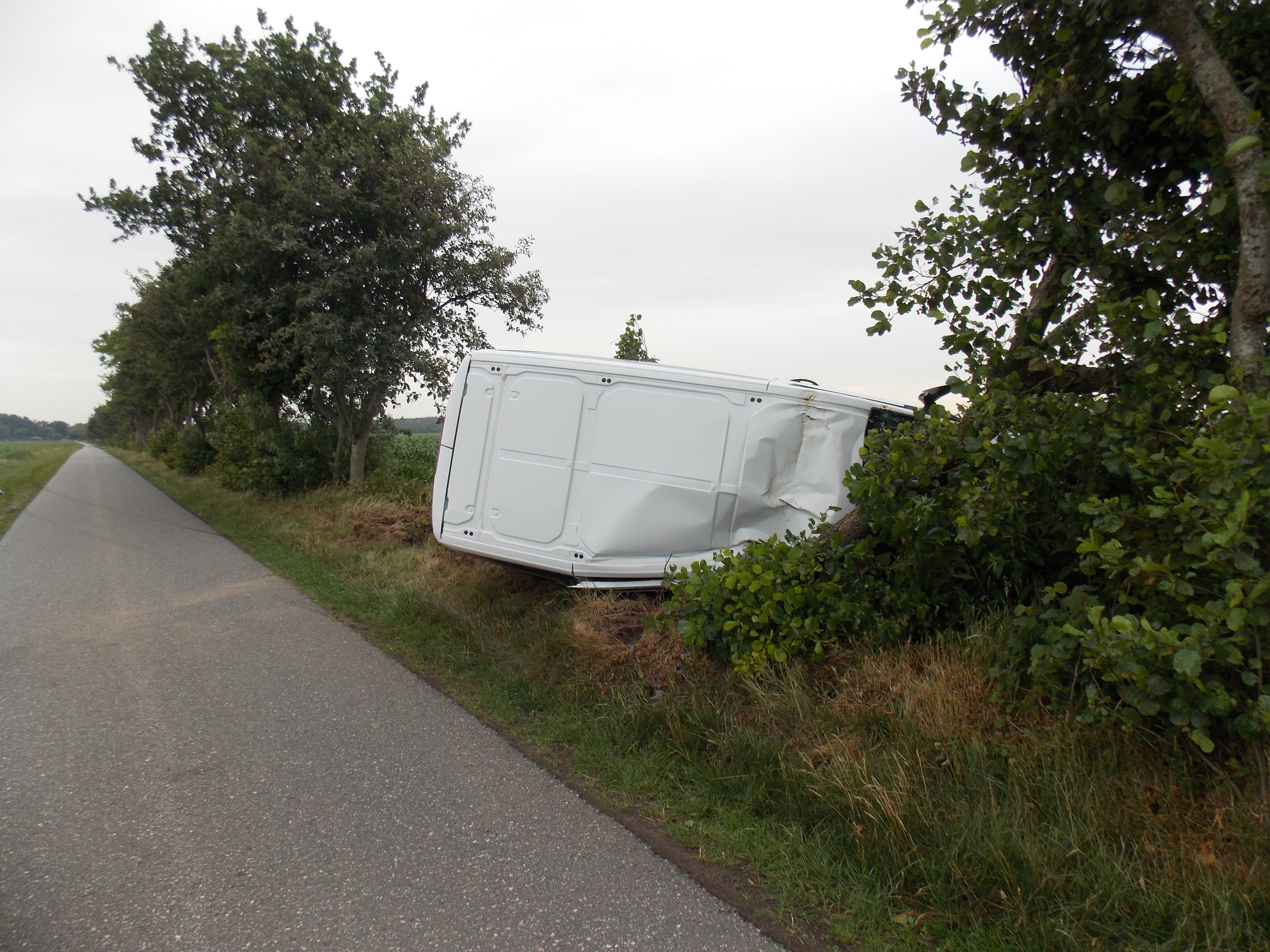Wanna. Viel Glück hatten heute Morgen gegen 6.30 Uhr drei rumänische Insassen eines Mietwagens bei einem Verkehrsunfall. Sie waren auf der Straße Süderheide bei Wanna mit einem Ford Transit unterwegs, als der Fahrer, ein 40-jähriger Rumäne, aus bisher ungeklärter Ursache die Kontrolle über den Kleinbus verlor. Der Wagen kam erst nach rechts von der Fahrbahn ab und schleuderte dann quer über die Fahrbahn in den linken Seitenraum. Hier überfuhr er vier Straßenbäume, überschlug sich und blieb auf der Seite liegen. Keiner der Insassen wurde bei dem Unfall verletzt. Der noch recht neue Mietwagen wurde total beschädigt. Der Sachschaden dürfte bei mehr als 20.000 Euro liegen.
