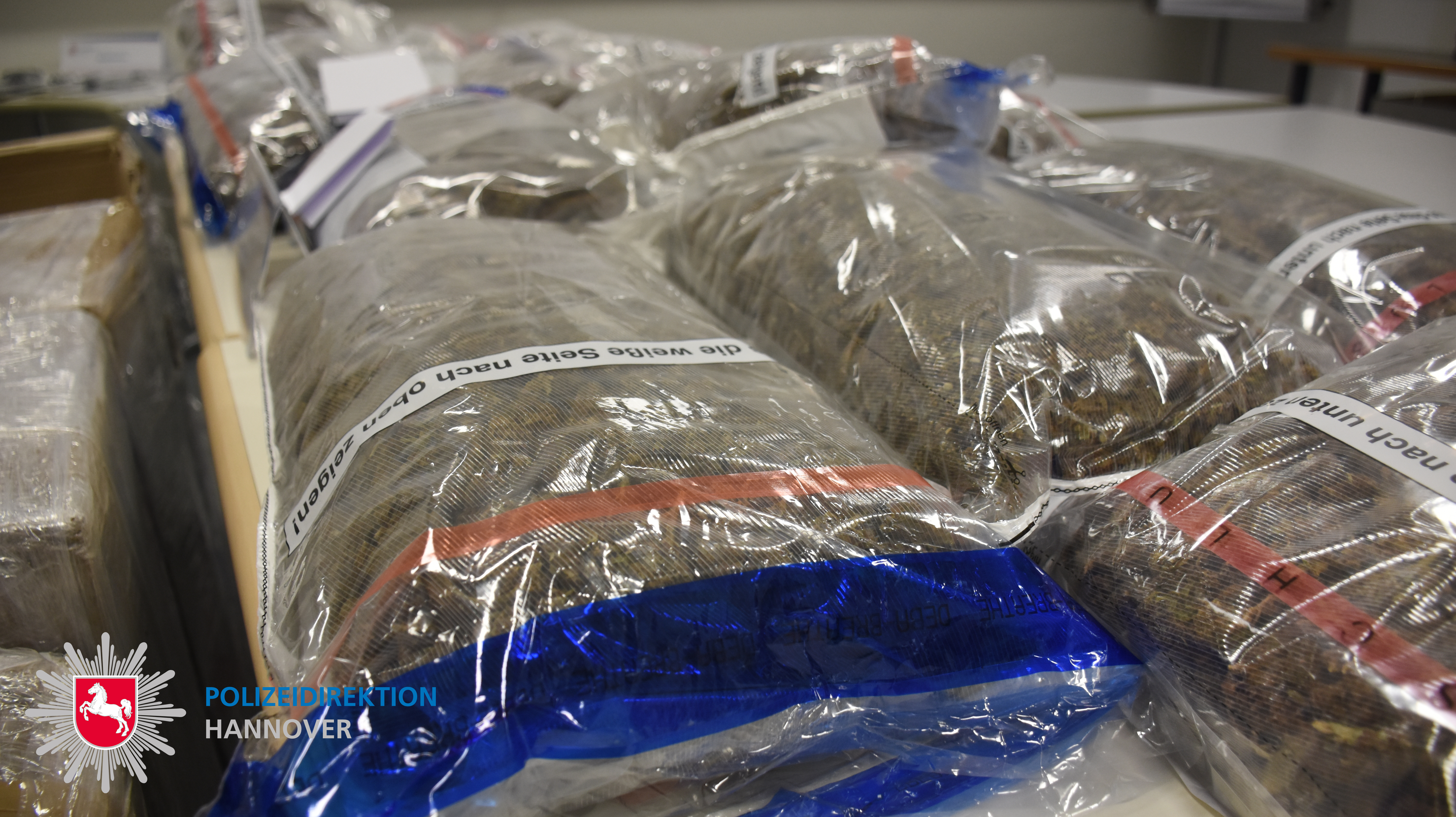 Nach umfangreichen Ermittlungen in einem Ermittlungsverfahren der Polizeidirektionen Dresden und Hannover wegen bandenmäßigen Handels von Betäubungsmitteln hatte die Staatsanwaltschaft Hannover sieben Durchsuchungsbeschlüsse für Objekte in der Landeshauptstadt Hannover sowie der Stadt Laatzen erwirkt. Gestern am frühen Vormittag schlugen die Ermittler in den Wohnungen in den hannoverschen Stadtteilen Mitte, Calenberger Neustadt und Stöcken sowie in Laatzen zu. Nachdem die Beamten zunächst sechs Personen in und an den Wohnungen festnehmen konnten, fanden sie noch 105 Kilogramm Marihuana in einer Wohnung in Laatzen und beschlagnahmten es. Darüber hinaus stellten die Fahnder diverse Mobiltelefone, Sim-Karten, einen Schlagstock, mehrere Messer, 12 000 Euro Dealgeld und 65 Gramm Kokain sicher.