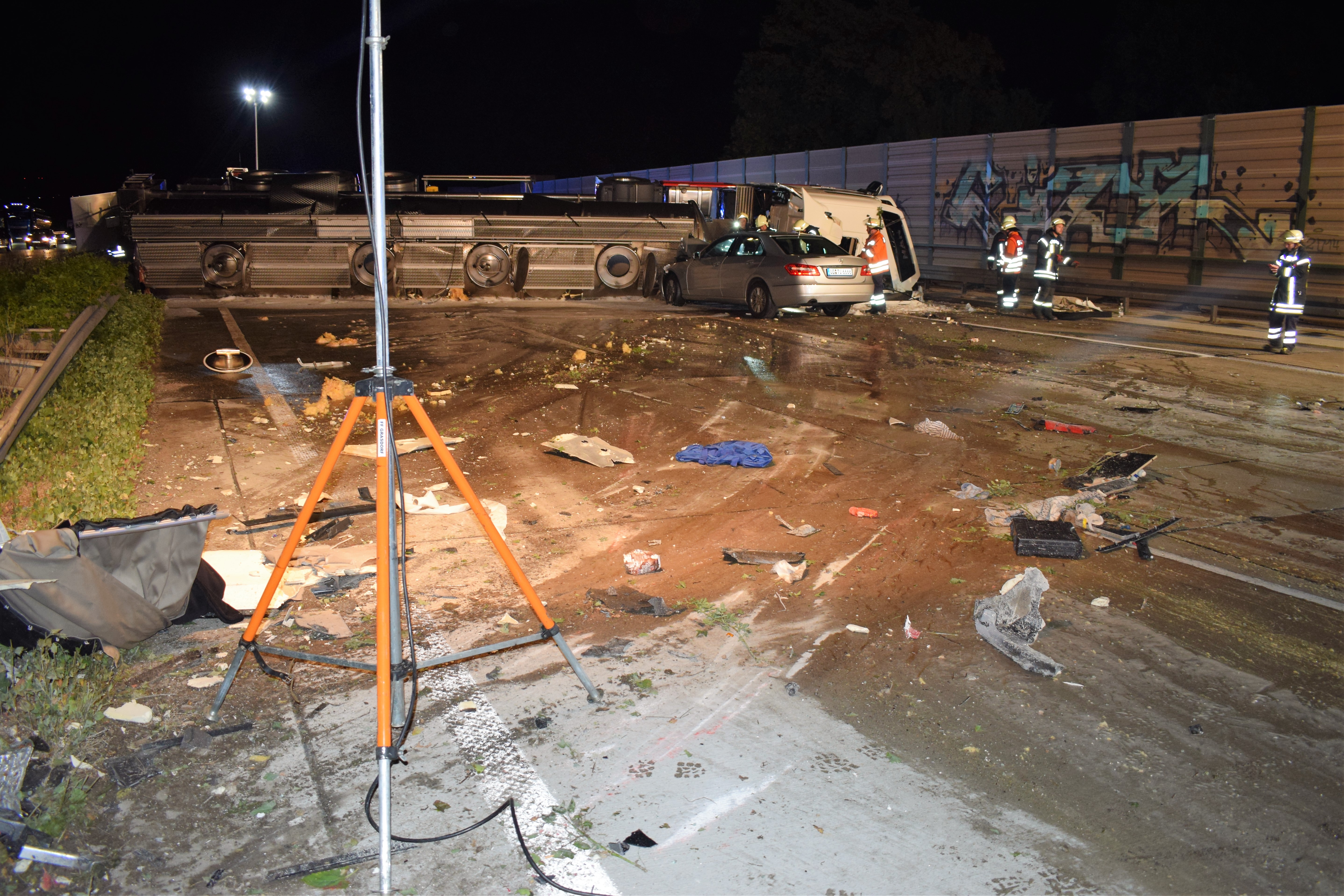 Weil auch Trümmerteile auf die Gegenfahrbahn geschleudert wurden, musste auch die Südfahrbahn für ca. 30 min voll gesperrt werden.