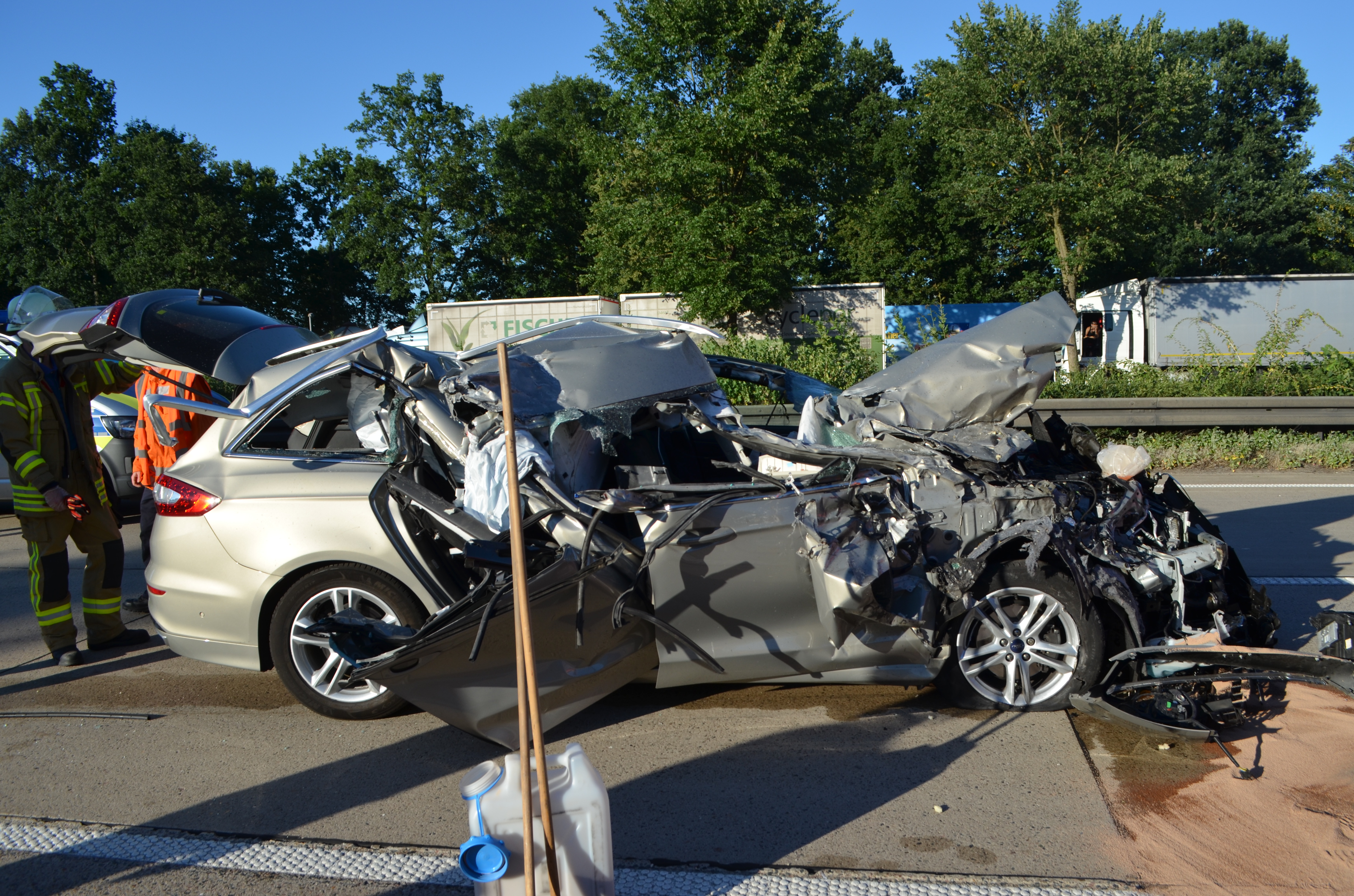 Hildesheim (ots) - Am Montag, 02.07.2018, um 19:20 Uhr befährt ein 41-jähriger polnischer Staatsbürger mit seinem 40-t-Sattelzug die A 7 in Richtung Süden, auf dem rechten der drei Fahrstreifen. In Höhe eines dortigen Parkplatzes nähert sich von hinten - vermutlich mit wesentlich höherer Geschwindigkeit- ein 67-jähriger aus Rheinland-Pfalz mit seinem Pkw. Der Pkw-Fahrer fährt mit seinem Fahrzeug hinten links unter den Sattelzug. Er wird durch den Aufprall in seinem Fahrzeug eingeklemmt, musste durch die Feuerwehr aus seinem Fahrzeug befreit werden und wurde - wie durch ein Wunder- nur leicht verletzt. Der Sattelzugfahrer erlitt einen Schock und wurde, ebenfalls leicht verletzt, in Hildesheimer Krankenhäuser eingeliefert.