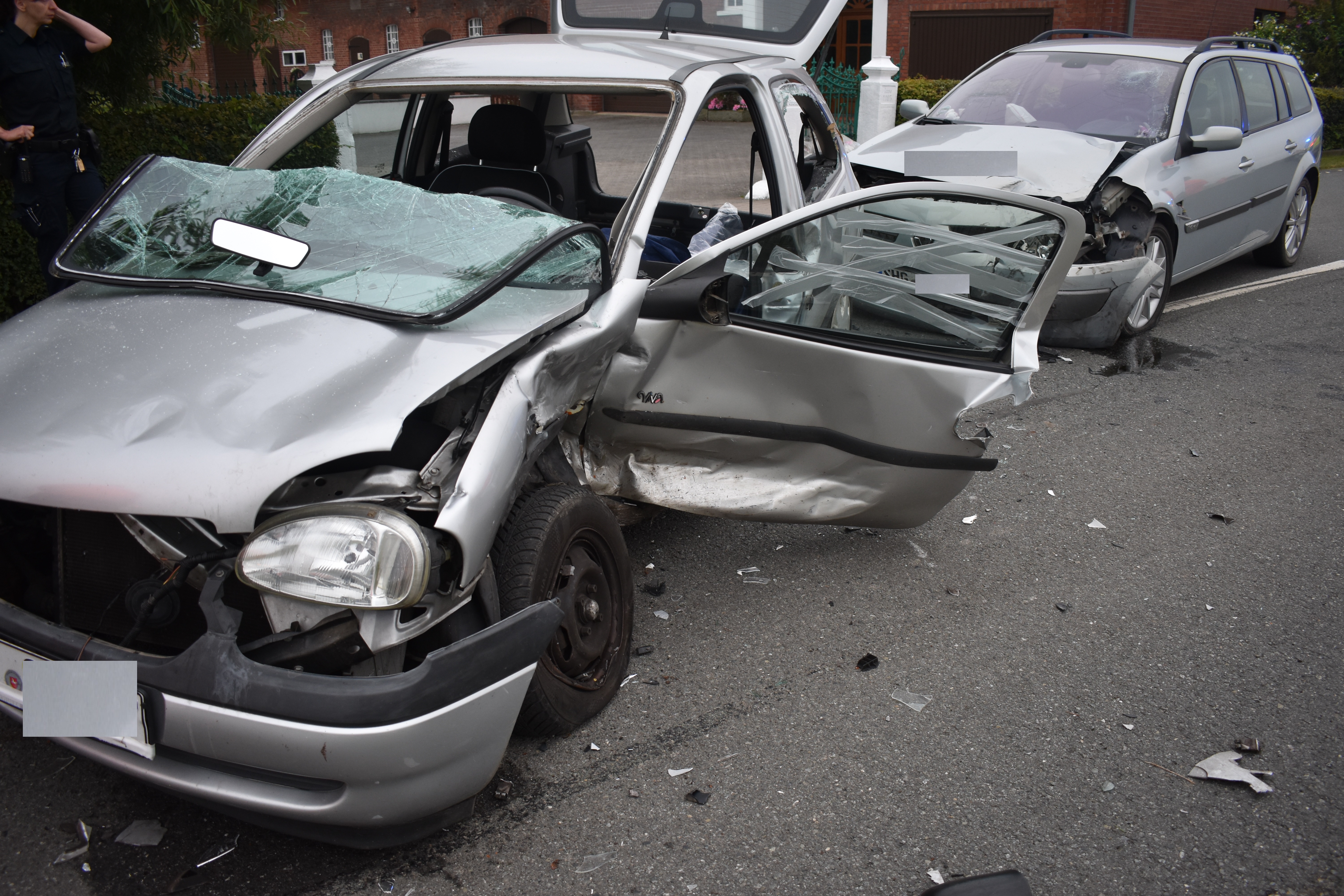 Nienburg (ots) - (BER)Am Freitagmorgen,13.07.2018, gegen 05.50 Uhr, fuhr ein Zeitungszusteller mit seinem Opel aus einer Grundstückszufahrt in Lüdersfeld, Vornhagen heraus. Der 56-jährige übersah dabei offenbar einen von links herannahenden 51-jährigen Stadthäger mit einem Renault, dieser prallte in die Fahrerseite seines Pkw. Durch den Zusammenstoß war die Karosserie des Corsa so stark deformiert, dass die Feuerwehr den Fahrer aus dem beschädigten Fahrzeug befreien musste. Beide Beteiligten wurden verletzt in das Klinikum Schaumburg eingeliefert, die Fahrzeuge erlitten einen Totalschaden.